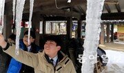한파와 폭설이 겹친 5일 전남 함평군 함평시장 한옥 처마에 주렁주렁 달린 고드름을 학생들이 신기한 듯 만지고 있다. 7일까지 서울 등 대다수 지역 낮 최고기온이 영하권에 머물다가 8일부터 차차 풀릴 것으로 보인다. 함평=박영철 기자 skyblue@donga.com}