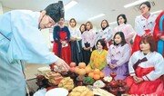설날을 열흘 앞둔 6일 광주 북구 용봉동주민센터에서 열린 전통 차례상 차리기 교실에 참가한 베트남과 몽골 필리핀 등지에서 온 다문화가정 주부들이 고유예법에 따라 직접 상차리기를 하고 있다. 박영철 기자 skyblue@donga.com}