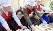 설 연휴를 일주일 앞둔 8일 광주 동구 노인복지센터에서 롯데백화점 광주점 김정현 점장과 광주전남지역 아웃렛점장, 샤롯데자원봉사원 30여 명이 지역 어르신 500여 명에게 떡국 배식 봉사를 하고 있다. 박영철 기자 skyblue@donga.com}