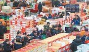 설을 앞둔 12일 광주 북구 각화동 청과물시장에 사과, 배 등 설 제수용 과일상자가 가득 쌓여 있는 가운데 경매사들이 과일 경매로 분주하다. 박영철 기자 skyblue@donga.com}