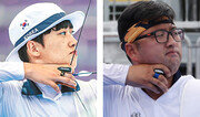 2020 도쿄 올림픽에서 금메달 4개를 휩쓴 한국 양궁 리커브 대표팀이 2021 세계선수권에서도 단체전 3종목 석권을 눈앞에 뒀다. 안산(광주여대)-김우진(청주시청) 조는 23일 미국 사우스다코타주 양크턴에서 열린 혼성전 준결승에서 일본을 5-1(37-37, 38-36, 39-37)로 꺾었다. 안산-김우진 조가 러시아와의 결승에서도 이기면 한국 양궁은 혼성전이 처음 도입된 2011년 토리노 대회부터 6연패를 이루게 된다. 한국은 남녀 단체전에서도 모두 결승에 올랐다. 안산과 강채영(현대모비스), 장민희(인천대)로 구성된 여자 팀은 프랑스와 슛오프 접전 끝에 5-4(53-57, 51-54, 54-53, 55-53, <28+-28>)로 이겼다. 슛오프에서 양 팀 모두 28점을 기록했지만 장민희의 화살이 과녁 중심부에 가장 가깝게 꽂히면서 한국이 결승행 티켓을 따냈다. 대한양궁협회 관계자는 “‘깻잎 한 장’ 차이로 이겼다”고 전했다. 오진혁(현대제철), 김우진, 김제덕(경북일고)으로 이뤄진 남자 대표팀도 대만을 6-2(53-57, 57-52, 56-51, 57-56)로 눌렀다. 혼성전과 남녀 단체전 결승은 25일 새벽에 열린다. 도쿄 올림픽 3관왕 안산은 이번 대회에서 다시 한번 3관왕에 도전한다.이헌재 기자 uni@donga.com}