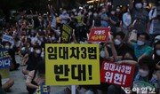 “더불어민주당과 정부가 임대인을 적폐로 몰고, 임차인과의 싸움을 부추기고 있습니다.”(50대 남성 박희성 씨) 1일 오후 4시경 서울 영등포구 여의도공원 앞에선 더불어민주당의 ‘임대차 3법’ 강행 처리와 정부 부동산정책에 항의하는 집회가 열렸다. 비가 내렸지만 인터넷 카페 ‘6·17규제소급적용피해자모임’ 등 4개 단체 회원과 시민 등 2000여 명(주최 측 추산)이 모였다. 이들은 지난달 30일 국회에서 계약갱신요구권, 전월세상한제 등을 담은 주택임대차보호법 개정안이 통과돼 바로 시행에 들어간 것에 대해 비판의 목소리를 높였다. 집회 참가자 박 씨는 연단에서 “임대차 3법은 임대인과 임차인을 갈라놓는 나쁜 법이다. 당장 전셋값이 치솟고 전세 매물이 줄어들면서 서로 손해를 보고 있다”고 주장했다. 집회 현장에는 ‘임대인도 국민이다’ ‘임대차 3법 반대’ 등의 피켓이 다수 등장했다. 참가자들은 정부에 항의하는 뜻으로 자신의 신발을 벗어 머리 위로 던지는 퍼포먼스도 했다. 정부 부동산정책에 항의하는 주말 집회는 이번이 세 번째다. 시민단체 사법시험준비생모임(사준모)은 주택임대차보호법 개정안이 위헌 소지가 있다며 헌법재판소에 헌법소원 심판을 청구했다. 사준모는 1일 “계약갱신요구권제는 임대인의 재산권을 침해하고, 현재 좋은 전셋집에 사는 임차인에게만 이득을 줘 평등권을 침해한다”고 주장했다.지민구 기자 warum@donga.com}