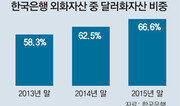 한국은행의 외화자산에서 미국 달러화가 차지하는 비중이 67%에 달해 관련 통계를 공개한 2007년 이후 최고치로 나타났다. 한은이 31일 발표한 ‘2015년도 연차보고서’에 따르면 지난해 말 한은의 외화자산에서 미 달러화의 비중은 2014년 말보다 4.1%포인트 늘어난 66.6%였다. 외화자산이란 전체 외환보유액에서 금과 국제통화기금(IMF) 특별인출권(SDR), IMF포지션(IMF에서 즉시 인출이 가능한 대외준비자산)을 뺀 것이다. 미 달러화 비중은 2010년 63.7%, 2011년 60.5%, 2012년 57.3% 등으로 낮아지다가 2013년 58.3%로 반등해 상승세를 이어가고 있다. 한은은 미국 경제의 꾸준한 성장세와 미국 연방준비제도(Fed·연준)의 기준금리 인상 등으로 달러화가 강세를 보일 것으로 예상해 달러 표시 자산의 비중을 확대하고 유로화 등 기타통화 표시 자산 비중을 줄였다고 설명했다.장윤정 기자 yunjung@donga.com}