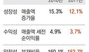 지난해 국내 기업들은 1000원어치를 팔아 37원을 남긴 것으로 나타났다. 이는 2010년(49원)보다 12원 낮아진 수준으로 세계 경기 침체와 국제 원자재 가격 상승 등으로 수익성이 악화된 것으로 분석됐다. 14일 한국은행이 펴낸 보고서 ‘2011년 기업경영분석’에 따르면 국내 법인기업 43만6000여 개를 전수 분석한 결과 기업들의 수익성과 성장성은 떨어진 반면 부채는 소폭 늘었다. 기업들이 실제 벌어들인 돈을 나타내는 수익성 지표인 매출액 세전(稅前) 순이익률은 2010년 4.9%에서 2010년 3.7%로 떨어졌다. 기업이 1000원어치를 팔아 남긴 돈이 2010년에는 49원이었다면 2011년에는 37원으로 줄어든 셈이다. 특히 제조업의 매출액 세전 순이익률이 7.0%에서 5.2%로 가파르게 하락했다. 한국의 주력업종인 전기전자(6.4%→3.6%) 자동차(9.4%→6.9%) 조선(8.4→5.9%) 등의 수익성이 모두 악화됐다. 김영헌 한은 경제통계국 기업통계팀장은 “원자재 가격이 상승하고 세계 경기 둔화로 수요가 줄어든 데 따른 것”이라고 설명했다. 또 다른 수익성 지표인 매출액영업이익률(매출액 대비 영업이익 비중)도 2010년 5.3%에서 2011년 4.5%로 떨어졌다. 기업의 성장성을 나타내는 매출액증가율은 2010년 15.3%에서 지난해 12.2%로 낮아졌다. 제조업 중에서는 전기전자의 증가율이 19.6%에서 2.3%로 크게 감소했다. 비제조업 중 운수업의 매출액 증가율이 세계경기 둔화로 물동량이 줄면서 18.9%에서 6.6%로 줄었다. 기업의 재무 상태를 보여주는 부채비율은 150.1%에서 152.7%로 올랐다. 전기가스(114.8%→130.2%)와 운수(134.6%→179.1%)의 오름세가 가팔랐다. 기업 규모별로는 대기업의 지표 악화가 두드러진 가운데 중소기업도 경기불황을 비켜가지 못했다. 2010년과 2011년 매출액 세전 순이익률이 대기업은 6.4%에서 4.6%로 떨어졌고 중소기업은 2.4%에서 2.2%로 내려앉았다. 같은 기간 매출액증가율은 대기업(16.4%→13.1%)과 중소기업(13.4%→10.6%)이 함께 하락했다. 부채비율은 대기업이 140.5%에서 144.9%로 높아진 반면 중소기업은 182.2%에서 179.2%로 내려갔다. 하지만 이는 금융부채뿐만 아니라 어음 외상 등이 줄어든 영향으로 중소기업의 매출이 그만큼 감소했음을 보여준다.김유영 기자 abc@donga.com}