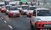 2일 서울 종로구 세종대로에서 우정사업본부 집배원들이 안전운행 실천을 다짐하는 전기차 퍼레이드를 벌이고 있다. 우정사업본부는 올해 안에 집배 오토바이보다 안전한 초소형 전기차 5000대를 도입할 예정이다. 김재명 기자 base@donga.com}