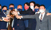 미국프로농구(NBA) LA 레이커스의 ‘킹’ 르브론 제임스(36)가 팀을 정상으로 이끌었다. 1월 헬리콥터 추락 사고로 세상을 떠난 레이커스의 전설 코비 브라이언트의 영전에 우승을 바치겠다는 약속도 지켰다. 레이커스는 12일 미국 올랜도에서 열린 NBA 챔피언결정전(7전 4승제) 6차전에서 마이애미를 106-93으로 꺾고 4승 2패로 우승을 차지했다. 브라이언트가 뛰던 2009∼2010시즌 우승 이후 10년 만에 정상을 탈환한 레이커스는 보스턴과 최다 우승 공동 1위(17회)가 됐다. 2018∼2019시즌을 앞두고 제임스를 영입한 레이커스는 이번 시즌에 앞서 앤서니 데이비스까지 영입한 끝에 명가의 자존심을 되찾았다. 제임스는 6차전에서 28득점, 14리바운드, 10도움으로 트리플 더블을 기록하며 챔피언결정전 최우수선수(MVP)에 선정됐다. 제임스는 마이애미에서 뛰던 2012년과 2013년, 클리블랜드 소속이던 2016년에 이어 통산 4번째 챔피언결정전 우승컵을 품에 안았고 4차례 모두 MVP로 뽑혔다. 미국 프로스포츠에서 3개 팀에서 챔피언결정전 MVP가 된 건 제임스가 최초다. 플레이오프(PO) 260경기에 나선 제임스는 데릭 피셔(259경기)를 넘어 역대 PO 최다 출전 기록도 세웠다. 1월 브라이언트의 사고 직후 “부디 천국에서 나에게 힘을 주고 지켜봐 달라”고 했던 제임스는 이날 “역사가 깊은 구단에서 우승해 기쁘다. 모두가 존경받을 만하다. 동료들이 믿어줬기 때문에 정상에 오를 수 있었다. 앞으로 코비의 정신을 이어가야 한다”고 말했다. 이날 시상식은 신종 코로나바이러스 감염증(코로나19) 예방을 위해 ‘트로피는 셀프’ 방식으로 열렸다. 애덤 실버 NBA 커머셔너는 “이 트로피가 여러분의 것입니다”라는 말만 했고 선수들이 트로피를 직접 가져와 시상식을 이어갔다. 유재영 기자 elegant@donga.com}