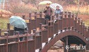 8일 광주 서구 풍암호수공원 산책로에서 시민들이 메마른 대지를 적시는 겨울비가 내리자 우산을 들고 빗속을 걷고 있다. 박영철 기자 skyblue@donga.com}