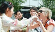 한우자조금관리위원회는 한우의 안전성을 알리기 위해 29일 서울 중구 다동 청계천 광통교 앞에서 ‘한우 안심하고 드세요’ 캠페인을 열고 불고기 3000인분 무료 시식행사를 했다. 휴일 청계천을 찾은 시민과 외국인 관광객들이 행사요원이 건네는 불고기를 맛보고 있다. 장승윤 기자 tomato99@donga.com}