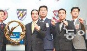 프로축구가 겨울잠을 끝내고 9개월의 장기 레이스를 시작한다. 2014시즌 K리그 클래식은 8일 지난 시즌 우승, 준우승 팀인 포항과 울산이 맞붙는 개막전을 시작으로 11월 30일까지 팀당 38경기, 전체 228경기를 치른다. 한국프로축구연맹은 3일 서울 종로구 아산정책연구원에서 K리그 클래식 12개 팀 감독이 참석한 가운데 미디어데이 행사를 열었다.● 전북에 몰표 우승 후보를 묻는 질문에 대부분의 감독이 전북을 꼽았다. “우리 팀은 제발 우승 후보에서 좀 빼 달라”며 울산을 우승 후보로 거론한 최강희 전북 감독과, 이 말을 듣고서 “(최강희 감독이) 빼달라고 하니 빼드리겠다. 전북과 우리 팀을 뺀 10개 팀 모두 우승 후보다”라고 말한 박항서 상주 감독을 제외한 10명의 감독 중 8명이 전북을 우승 후보로 지목했다. 감독들이 전북을 우승 후보로 거론한 이유는 비슷했다. 공격력이 가장 좋은 데다 선수층이 두꺼워 안정적인 전력을 갖췄다는 평가가 대부분이었다. 박종환 성남 감독은 “며칠 전 전북의 아시아축구연맹(AFC) 챔피언스리그 경기를 TV로 봤는데 흠 잡을 데가 없더라”라고 말했다. 최강희 감독은 “우승 후보로 인정받는 건 좋은 일이지만 12개 팀의 전력 차이는 거의 없다고 본다”며 몸을 낮췄다. 연맹이 지난달 26, 27일 실시한 우승 후보 예상 인터넷 팬 투표에서는 전북과 수원이 나란히 22.7%의 표를 얻어 공동 1위였다.● 노장의 귀환 이날 행사에서는 현역 감독으로 복귀한 두 노장(老將)이 많은 주목을 받았다. 76세로 최고령 사령탑인 박종환 감독은 대구 지휘봉을 내려놓은 2006년으로부터 7년 만인 지난해 12월 성남 감독으로 그라운드에 복귀했다. 역시 지난해 12월 경남 지휘봉을 잡은 이차만 감독은 1999년 대우 사령탑에서 물러난 뒤 14년 만에 복귀했다. 64세인 이차만 감독은 “노병은 살아 있다는 걸 꼭 보여주겠다. 육십 평생을 축구 하나로 살아왔다. 후배들과 멋진 승부를 펼치겠다”고 각오를 밝혔다. 박종환 감독은 “1965년부터 감독 생활을 시작해 2006년까지 41년 동안 감독을 했었고 또다시 돌아왔다. 잘한 선택인지 아닌지는 지금도 헷갈릴 만큼 부담스럽지만 일단 맡은 이상 팬들에게 좋은 모습을 보일 수 있도록 하겠다”고 말했다. 연맹은 두 노장이 이끄는 성남과 경남을 시즌 첫 경기부터 맞붙게 했다. 두 팀은 9일 창원에서 맞대결한다.● 월드컵 열기 K리그로? 6월 13일부터 한 달간 열리는 브라질 월드컵의 열기가 K리그로 이어졌으면 하는 바람도 많았다. 최용수 서울 감독은 “월드컵 이후에 K리그가 좀 더 발전할 수 있는 그런 효과가 나타났으면 좋겠다”고 말했다. 윤성효 부산 감독도 “월드컵에서 대표팀이 어느 정도 성적을 내느냐에 따라 이후 (K리그에 대한) 관심도가 달라질 수 있다. 대표팀이 좋은 성적을 내서 그 열기가 K리그로 이어지는 분위기가 만들어지면 좋겠다”고 했다. 안방에서 열린 한일 월드컵에서 4위의 성적을 냈던 2002년에는 전년에 비해 35만 명이 늘어난 265만 명이 경기장을 찾았다. 하지만 조별리그에서 탈락한 독일 월드컵이 열린 2006년(245만 명)과 16강에 올랐던 남아프리카공화국 월드컵의 해 2010년(273만 명)에는 전년도에 비해 관중이 각각 42만 명, 8만 명이 감소했다.이종석 기자 wing@donga.com ▼ ‘촌철살인’ 미디어데이 말말말 ▼모두가 “우승”을 외쳤던 예년 분위기와는 확연히 달랐다. 2014년 K리그 클래식을 준비하는 감독과 선수들은 팀 상황에 따라 구체적인 목표가 있었다. 3일 열린 미디어데이에서 나온 말들을 정리했다. ▽첫 경기가 독이 된 것 같다=최강희 전북 감독. AFC 챔피언스리그에서 일본 요코하마 마리노스를 3-0으로 꺾은 뒤 모든 전문가가 전북을 우승 후보 1강으로 전망하는 것에 대해. 최 감독은 “소문의 진원지를 찾아보니 최용수 서울 감독이 퍼뜨렸다. 부잣집 도련님의 넋두리가 너무 심한 것 같다”고 한마디. ▽개막전은 이긴 것으로 하겠습니다=최강희 전북 감독. ‘지난해 강호 킬러로 활약했는데 올해는 어떻게 전망하느냐’는 질문에 윤성효 부산 감독이 “올핸 비슷한 팀을 이기고 보내줄 팀은 보내주겠다”고 하자. 전북과 부산은 8일 처음 격돌한다. ▽보기만 해도 무서운 분이셨는데…. 그래도 축구로 승부를 보고 싶다=최용수 서울 감독. 박종환 성남 감독이 “감독들이 너무 어리다”고 한 것에 대해 어떻게 생각하느냐는 질문에. ▽선수 땐 한쪽 눈 감고도 이겼는데…=하석주 전남 감독. 선수 시절에는 현재 강팀을 이끌고 있는 황선홍 포항 감독과 최용수 서울 감독보다 경쟁력이 있었다는 것을 강조하며. ▽우승 못한 책임을 나보고 지라고 했다=조민국 울산 감독. 지난해 아쉽게 2위에 머문 뒤 떠난 김호곤 감독이 올해 우승하라고 했다며. ▽야동은 혼자 몰래 보는 것이라 잘 모른다=전북 이승기. 팬미팅 때 ‘야동승기’란 별명으로 불렸는데 혹 전북에서 누가 야동을 가장 많이 보느냐란 한 팬의 질문에. ▽제가 스피드에서는 좀 낫지 않을까요=포항 고무열. ‘제2의 황새’로 불리는데 황선홍 감독보다 더 잘하는 게 뭐냐는 팬의 질문에 “비교 대상이 아니다. 향후 비교 대상이 되도록 노력하겠다”라면서도 굳이 하나를 