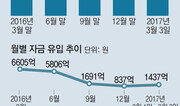 올해 1월 저축은행의 가계대출이 전달보다 5083억 원 늘어난 것으로 나타났다. 2003년 10월 한국은행이 관련 집계를 시작한 이후 1월 증가액으로 사상 최대다. 지난해 금융당국이 은행권 가계대출을 조이자 저축은행 대출 수요가 늘어나는 ‘풍선효과’가 나타난 것으로 풀이된다. 올해 초 확연했던 은행권의 대출 감소세도 주춤하는 모습을 보이고 있다. 미국 금리 인상을 앞두고 시장금리가 들썩이고 있어 가계부채 관리를 강화해야 한다는 지적이 나온다. 9일 한국은행에 따르면 1월 비은행 예금취급기관(저축은행, 상호금융, 신용협동조합, 새마을금고, 신탁·우체국예금)의 가계대출 잔액이 294조1966억 원으로 지난해 12월보다 2조9412억 원 증가했다. 지난해 월평균 증가액(약 3조5000억 원)보다 작지만 1월 증가액으로는 역대 최대다. 특히 1월 저축은행 가계대출 잔액이 19조2624억 원으로 전달보다 9775억 원 증가했다. 12월 증가분(4378억 원)의 갑절이 넘는다. 한은 관계자는 “기존 통계에 포함되지 않았던 ‘영리목적의 가계대출’이 올해부터 포함돼 대출액이 크게 증가했다”고 설명했다. 기존 방식으로 집계한 1월 가계대출 증가액은 5083억 원이라는 것이다. 하지만 이 또한 지난해 7월(5924억 원), 2015년 10월(5117억 원)에 이어 월별 기준으로 세 번째로 큰 증가폭이다. 이 때문에 풍선효과에 대한 우려가 가시지 않고 있다. 지난달 은행권에서는 가계대출 감소세가 멈췄다. 지난달 은행권 가계대출 잔액은 710조9000억 원(한국주택금융공사 정책모기지론 포함)으로 1월보다 2조9000억 원 늘었다. 지난해 월평균 증가액(약 4조5000억 원)에는 미치지 못했지만 감소세가 확연했던 1월 증가액(585억 원)보다는 눈에 띄게 늘어난 것이다. 증가액의 대부분은 주택담보대출(2조1000억 원)이 차지했다. 한은 관계자는 “시중은행 상품보다 금리가 낮은 주택금융공사의 보금자리론 수요가 늘었다”고 말했다. 우려되는 점은 금리다. 미국 연방준비제도(Fed·연준)가 이달 금리를 올릴 가능성이 높아지면서 시장 금리가 상승세를 타고 있기 때문이다. 한은에 따르면 국고채 3년물 금리는 올해 1월 말, 2월 말 각각 1.68%, 1.67%였지만 이달 8일 1.78%로 올랐다. 은행들도 대출금리를 속속 인상하고 있다. 이에 금융당국은 이날 국내 은행의 여신담당 부행장을 소집해 회의를 열고 가계대출 현황을 점검했다. 금리 상승 국면 속에 일부 시중은행의 지난달 가계대출 증가액이 목표치를 크게 웃돌았기 때문이다. 강유현 yhkang@donga.com·박창규 기자}