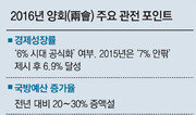 3일 전국인민정치협상회의(전국정협) 개막을 시작으로 중국의 최대 정치 행사인 양회(兩會)가 시작되면서 수도 베이징(北京)의 긴장감이 높아지고 있다. 정책자문회의 성격의 전국정협 개막 이틀 뒤인 5일 국회 격인 전국인민대표대회(전국인대)가 개막식을 갖는다. 양회는 두 회의가 비슷한 시기에 열린다고 해서 붙여진 이름이다. 개막 하루 전인 2일 베이징 중심의 톈안먼(天安門) 광장과 인민대회당 앞에는 소총을 든 무장경찰들이 증강 배치됐다. 당국은 양회 대표들이 묵는 숙소 22곳과 기차역 4곳, 지하철역 49곳 등에 1000여 명의 무장 병력을 배치하고 무장 순찰차 180대를 투입해 삼엄한 경계를 펼치고 있다. 베이징으로 들어오는 주요 도로 56곳에는 임시 검문소가 설치됐다. 1일부터 16일까지 베이징 시계(市界)의 상공에서는 체육 오락 광고 등의 목적으로 비행 물체를 띄우는 것이 금지됐다. 이 같은 경계 강화는 요인들을 노린 테러 등 안전사고를 방지하기 위해서다. 양회 기간에는 전국정협 대표 2229명과 전국인대 대표 2943명 등 5100여 명의 대표와 수행원 등 수만 명이 베이징에 집결한다. 지방 정부의 고위 간부 상당수도 상경해 중앙 정부 관료들을 상대로 로비를 벌인다. 양회 취재를 위해 등록한 기자도 중국 언론 1900여 명, 홍콩·마카오 360명, 외신 약 1000명 등 3260여 명에 이른다. 올해 최대 관심사는 5일 전국인대 개막식에서 리커창(李克强) 총리가 발표할 올해 경제성장률 목표치와 같은 날 공개되는 국방예산 규모다. 지난해 성장률 목표치는 ‘7% 안팎’으로 제시됐으나 6.9%를 달성해 겨우 턱걸이를 한 수준이다. 올해는 6%대로 낮춰 잡아 사실상 ‘중저속 성장시대 원년’을 선언할지 관심이다. 올해 국방예산은 지난해 제시된 10.1% 증액이 최근 5년 내에 가장 낮았던 데다 중국이 공격적으로 군사력 강화에 나서고 있어 크게 늘어날 가능성이 있다. 일부에선 2016년 국방예산이 20%에서 많게는 30%까지 늘어날 것으로 보고 있다. 하지만 중국의 대폭적인 국방예산 증가는 남중국해 군사시설 건설 가속화와 함께 아시아에서 군비 경쟁을 촉발할 것으로 전망된다. 관영 환추(環球)시보는 2일 사설에서 “미국의 군사비는 한 해 5000억∼6000억 달러로 중국의 4배에 이른다”며 “두 자릿수 이상 증가해도 국민의 뜻에 부합한다”고 증액을 지지했다. 올해는 중국의 경제사회발전 13차 5개년(2016∼2020년) 규획(계획)이 시작되는 해로 이번 양회 기간 중 시진핑(習近平) 국가주석 집권 후반기 5년의 청사진도 제시된다. 특히 빈곤층 해소를 위한 이른바 ‘탈빈(脫貧) 공정’에 어떤 내용이 담길지 관심이 쏠린다. ‘좀비 기업’ 구조조정 및 과잉 생산시설 축소를 위한 방안도 제시될 것으로 보인다. 인력자원사회보장부가 최근 석탄과 철강 산업 구조조정으로 180만 명의 실업자가 발생할 것이라고 발표한 것도 그 일부다. 월스트리트저널(WSJ)은 2일 집권 4년 차를 맞은 시 주석의 개인 권력 강화와 ‘당에 대한 충성’ 드라이브가 어떤 도전을 받게 될지 주목된다고 보도했다. 아울러 양회 기간 토론이나 돌출 발언 등을 통해 기득권을 침해당한 사람들이 어떤 식으로든 저항의 표시를 할 수도 있다고 분석했다.베이징=구자룡 특파원 bonhong@donga.com}