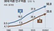 인천 중구에 사는 30대 직장인 남성 이모 씨(31)는 당분간 결혼 생각이 없다. 신혼집을 구해야 한다는 압박에 시달리기보다 월세방에 살더라도 ‘경제적 자유’를 얻고 싶어서다. 그는 “‘초라한 기혼보다 화려한 싱글’이 낫다”며 “결혼을 하고 자녀를 낳는 것보다 주식과 가상화폐 투자로 돈을 먼저 불리는 게 목표”라고 했다. 지난해 30대 남성 가운데 미혼 비중이 처음으로 절반을 넘어섰다. 결혼을 꼭 해야 한다는 생각을 버리고 자발적으로 비혼을 택하거나 취업난과 집값 급등에 어쩔 수 없이 결혼을 미루는 젊은이들이 늘어난 결과로 풀이된다. 27일 통계청의 ‘2020년 인구주택총조사’에 따르면 지난해 30대(662만7045명) 가운데 미혼인구는 281만5227명(42.5%)으로 조사됐다. 미혼 인구 비중은 5년 전과 비교해 모든 연령층에서 증가했지만 30대 미혼율은 2015년(36.3%)보다 6.2%포인트 오르며 가장 큰 폭으로 증가했다. 30대 미혼 인구 비중은 1990년 6.8%, 2000년 13.4%, 2010년 29.2%로 늘어난 뒤 지난해 40%를 넘어섰다. 이택광 경희대 글로벌커뮤니케이션학부 교수는 “좋은 일자리가 사라지고 집 구하기가 어려워지면서 30대들 사이에서 ‘혼자 즐기며 살겠다’는 가치관의 변화가 생겼다”며 “결혼하고 아파트에 거주하며 자녀를 기르는 전통적인 ‘중산층의 규범’도 무너졌다”고 분석했다. 특히 30대 남성의 절반은 결혼을 하지 않은 것으로 조사됐다. 30대 남성 미혼율은 50.8%로 2015년(44.2%)보다 6.6%포인트 늘었다. 30대 여성 미혼율은 33.6%로 같은 기간 5.5%포인트 증가했다. 학력별로는 남성은 ‘2, 3년제 대학 졸업자’의 미혼 비중이 27.3%로, 여성은 ‘대학원 졸업자’의 미혼 비중이 22.1%로 각각 가장 높았다. 20세 이상 성인 가운데 ‘본인의 일이나 직업’으로 생활비를 마련하는 인구는 1783만3000명으로 전체의 42.9%를 차지했다. 이어 ‘배우자의 근로활동비’로 생활하는 인구는 419만9000명(10.1%)이었다. 부모의 도움을 받아 생활하는 이른바 ‘캥거루족’은 313만9000명(7.5%)으로 집계됐다. 캥거루족 비중은 20대에서 38.9%로 가장 높았다. 주요 생산활동인구로 꼽히는 30대(7.0%), 40대(2.2%) 캥거루족은 모두 65만 명이었다. ‘3040 캥거루족’이 전체 캥거루족 5명 중 1명꼴인 셈이다. 60세 이상 고령자 가운데 생활비를 본인 스스로 마련하는 비중은 57.7%로 2015년(49.7%)에 비해 8%포인트 늘었다. 통계청 관계자는 “교육 수준이 높고 노후 준비가 잘된 베이비붐 세대가 고령층에 진입한 영향”이라고 설명했다.세종=구특교 기자 kootg@donga.com}