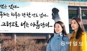 30일 선보인 서울 종로구 교보생명빌딩 광화문글판 겨울편을 배경으로 두 여성이 미소 짓고 있다. 이번 겨울편은 1996년 노벨문학상 수상자인 폴란드 여류시인 비스와바 심보르스카의 시 ‘두 번은 없다’의 한 구절이다. 교보생명은 계절이 바뀔 때마다 광화문글판에 새로운 글귀를 싣고 있다. 신원건 기자 laputa@donga.com}