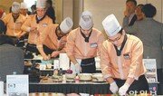 13일 서울 영등포구 롯데쇼핑 인재개발원에서 열린 ‘신선 명장 선발대회’에서 참가자들이 경연을 펼치고 있다. 롯데마트의 신선 명장 선발대회는 먹거리 진열 기법, 신메뉴 개발 능력 등을 평가해 신선 식품 부문의 최우수 사원을 가리는 행사이다. 신원건 기자 laputa@donga.com}