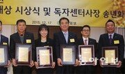 17일 서울 중구 한국프레스센터에서 열린 ‘2015 동아일보 황금대상 시상식’에서 수상자들이 기념 촬영을 하고 있다. 2002년 제정된 황금대상은 지역별로 공헌도가 높은 독자센터 사장에게 주는 상으로, 올해는 왼쪽부터 김현수(서울 염창), 양재길(부산 해운대), 이재형(대전 남둔산), 강영실(서울 마포서강), 김학용(인천 논현), 이홍철(대구 남수성), 김갑수(경기 용인동백) 독자센터 사장 등 7명이 상을 받았다. 신원건 기자 laputa@donga.com}