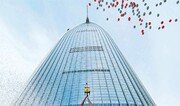 롯데월드타워의 완공을 1년 앞둔 롯데그룹이 22일 오후 타워 맨 꼭대기인 123층에 대들보를 올리는 상량식을 열었다. 이날 롯데물산 측은 1층에 있던 대들보를 타워 꼭대기에 있는 64t 크레인을 이용해 123층까지 약 30분 만에 들어 올렸다. 아래쪽 사진은 123층에서 찍은 상량식 모습이다. 신원건 기자 laputa@donga.com·사진공동취재단}