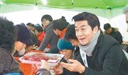 28일 서울 종로구 청계광장에서 한우자조금관리위원회가 한우 여러 부위를 시중가보다 최대 40% 싸게 파는 ‘설맞이 한우직거래장터’를 열었다. 홍보대사인 배우 김상중 씨가 판촉 활동을 하고 있다. 이 행사는 29일까지 진행된다. 신원건 기자 laputa@donga.com}
