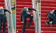 역대 최고령 미국 대통령인 조 바이든 대통령(79)이 19일 전용기 ‘에어포스원’에 탑승하기 위해 계단을 올라가다가 3번이나 발을 헛디뎌 비틀댔다. 백악관은 “바람이 강해서 그런 것이고 대통령의 건강엔 문제가 없다”고 했지만 지난해 대선 과정에서부터 제기된 그의 건강 이상설이 끊이지 않고 있다. CNN 방송 등에 따르면 바이든 대통령은 이날 아시아계 미국인 6명을 포함해 8명이 연쇄 총격으로 숨진 조지아주 애틀랜타로 가기 위해 워싱턴 인근 메릴랜드주 앤드루스 공군기지에서 에어포스원에 탑승했다. 그는 지상에서 비행기 탑승구를 연결하는 레드카펫 계단을 열 걸음 정도 올라가다가 발을 헛디뎌 비틀거렸다. 이후 세 걸음을 올라가다가 또 계단을 잘못 디뎌 휘청했다. 다시 일어나 올라가려다가 이번에는 완전히 넘어져 무릎을 꿇었다. 그는 상체를 90도로 숙이고 바지에 묻은 먼지를 툭툭 털며 숨을 돌린 뒤 두 손으로 양쪽 난간을 모두 짚고 남은 계단을 마저 올랐다. 카린 장피에르 백악관 부대변인(44)은 에어포스원 기내에서 취재진에게 “대통령은 100% 괜찮다. 밖에는 바람이 매우 세게 불고 있다”고 말했다. 대통령보다 훨씬 젊은 자신도 계단을 오르다가 넘어질 뻔했다며 강풍 때문에 일어난 해프닝이라고 했다. 하지만 그는 대통령이 넘어진 뒤 진료를 따로 받았는지에 대해서는 답하지 않았다. 이날 시애틀타임스는 바이든 대통령이 2019년 12월 이후 1년 넘게 의료기록을 공개하지 않고 있다고 보도했다. 영국 일간 인디펜던트는 피겨스케이팅의 ‘공중 3회전(트리플 악셀)’ 기술에 빗대 ‘3연속 넘어짐(트리플 텀블)’이라고 표현하며 대통령의 건강에 의구심이 커지고 있다고 보도했다. 바이든 대통령은 당선인 신분일 때도 반려견과 놀다가 넘어져 오른쪽 발목에 금이 갔다. 바이든 대통령은 8일 백악관 행사에서 펜타곤(미 국방부)의 명칭과 로이드 오스틴 국방장관의 이름이 기억나지 않는 듯 ‘국방부 그룹을 이끄는 이 사람’ ‘전직 장군’ 등으로 부르기도 했다. 지난해 12월에는 하비어 베세라 당시 보건복지장관 지명자의 이름을 잘못 말했다가 정정했고, 그보다 한 달 전 대선 투표 당일에는 손녀 피네건을 2015년 뇌종양으로 숨진 장남 보라고 소개했다. 도널드 트럼프 전 대통령 측은 대선 과정 내내 바이든의 치매 의혹을 제기했다. 트럼프와 가까운 것으로 알려진 블라디미르 푸틴 러시아 대통령 또한 18일 “바이든 대통령의 건강을 기원한다. 농담 없이 진심으로 하는 말”이라고 말했다. 바이든 대통령이 최근 러시아 야권 지도자 알렉세이 나발니의 독살 배후로 푸틴 대통령을 지목하며 ‘살인자’라고 비판하자 바이든 대통령의 건강 문제를 에둘러 공격하며 맞불을 놓은 것으로 보인다. 나발니는 푸틴 대통령의 정적(政敵)이다. 바이든 대통령은 자신과 관련한 건강 이상설을 의식한 듯 공개 석상에서 가볍게 뛰기도 하면서 건강한 모습을 강조해 왔다.이은택 기자 nabi@donga.com}