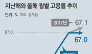 올해 6월 생산가능인구(15∼64세)의 고용률이 지난해 같은 달보다 줄어 2013년 5월 이후 5년 만에 월별 고용률이 하락한 것으로 확인됐다. 정부의 부인에도 최저임금 인상에 따른 ‘고용 쇼크’가 고용률 지표에 직접적인 영향을 미치고 있는 것이다. 5일 동아일보가 1999년 6월부터 집계한 통계청의 월별 고용동향을 전수 분석한 결과 올해 6월 생산가능인구 고용률은 67.0%로, 지난해 6월(67.1%)보다 0.1%포인트 감소했다. 15∼64세 월별 고용률이 전년보다 감소한 것은 2013년 5월 이후 5년 1개월 만이다. 정부는 그동안 최저임금 인상에 따른 고용 충격이 없다는 근거로 고용률이 전년 같은 기간보다 떨어지지 않는 점을 들었다. 실제 올해 1∼5월 고용률은 지난해와 같거나 상승했다. 하지만 6월 고용률이 꺾이면서 정부의 주장은 설득력을 잃게 됐다. 김대일 서울대 경제학부 교수는 “최저임금 인상 외에 6월 고용률 하락의 다른 원인은 보이지 않는다”고 말했다. 글로벌 금융위기의 여파로 매달 고용률이 하락한 2009년 이후에는 월별 고용률이 전년보다 떨어진 사례가 단 여섯 차례에 불과하다. 최악의 고용대란 속에서 정부가 믿었던 최후의 보루인 ‘고용률’마저 흔들리기 시작한 셈이다.유성열 기자 ryu@donga.com :: 고용률 :: 15세 이상 생산가능인구 중 취업자가 차지하는 비율. 고용률이 70%면 100명 중 70명이 취업했다는 뜻이다. 비경제활동인구를 아예 제외하는 실업률보다 노동시장 상황을 더 정확하게 반영하는 지표로 인정받고 있다. 경제협력개발기구(OECD)는 노령층을 제외한 15∼64세 인구를 기준으로 회원국의 고용률을 집계해 발표한다.}