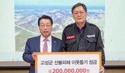 호반그룹은 지난 17일 산불 피해를 입은 강원도 고성군을 방문해 지역민 지원을 위한 성금 2억 원을 전달했다고 19일 밝혔다. 성금은 호반그룹 계열 호반호텔&리조트가 전달했다.최승남 호반호텔&리조트 사장은 “산불로 인해 피해가 큰 고성군 지역민들에게 깊은 위로를 전한다”며 “이번 성금이 피해 복구에 작게나마 보탬이 되고 고성군과 지역민들이 조속히 안정을 찾기 바란다”고 말했다.한편 호반그룹은 매월 찾아가는 봉사활동을 전개하고 분양 지역마다 ‘사랑의 쌀’ 전달 등 사회에 기여하기 위한 다양한 공헌활동을 펼치고 있다.동아닷컴 김민범 기자 mbkim@donga.com}