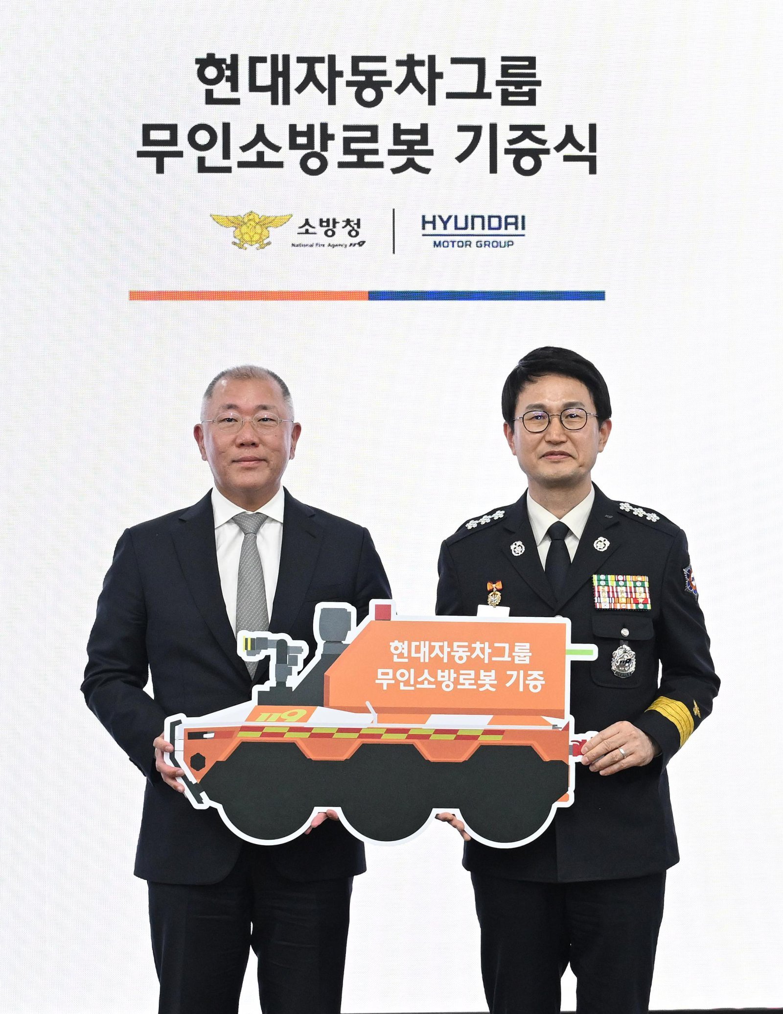 현대차그룹은 모빌리티 기술력을 사회적 가치로 환원하는 나눔 경영을 실천하고 있다. 특히 소방관의 안전을 지키는 첨단 무인소방로봇 기증과 교통약자를 위한 친환경 차량 지원 사업은 ‘사람을 살리는 기술’이라는 그룹의 지향점을 명확히 보여준다. 현대차그룹은 2월 경기도 남양주에 있는 수도권119특수구조대에서 정의선 현대차그룹 회장과 성 김 사장, 이용배 현대로템 사장 등이 참석한 가운데 무인소방로봇 기증 행사를 진행했다. 이날 행사에서 현대차그룹은 소방청과 함께 개발한 원격 화재 진압장비 무인소방로봇 4대를 소방청에 공식 기증했다. 무인소방로봇은 원격 주행이 가능한 현대로템의 전동화 다목적 무인 차량 ‘HR-셰르파’에 다양한 화재 진압장비를 탑재해 제작됐다. 정 회장은 “소방관 여러분들이 지켜온 안전의 가치를 함께 실현하고자 소방청과 무인소방로봇을 개발해 왔다”며 “올해 6월 개원하는 국립소방병원에는 차량과 재활 장비를 지원해 소방관분들의 빠른 회복에도 힘을 보탤 것”이라고 말했다. 무인소방로봇은 현대로템의 HR-셰르파에 △방수포 △자체 분무 시스템 △시야 개선 카메라 △원격 제어기 등을 탑재했다. 열과 짙은 연기에도 소방관을 대신해 원격 화재 진압 임무를 수행할 수 있는 것이 특징이며 원격 주행 기능도 갖추고 있다. 특히 자체 분무 시스템은 장비를 둘러싸고 있는 분무 노즐에서 물 입자를 지속해서 분사하는 시스템이다. 장비 외부에 수막을 만들어 화염 및 고열로부터 장비 몸체를 보호하는 원리다. 이 시스템을 통해 무인소방로봇은 섭씨 500∼800도에 육박하는 환경에서도 장비 온도를 섭씨 50∼60도로 낮춰 화재 현장 근거리에서도 원활한 소방 작업이 가능하다. 이 밖에 무인소방로봇에는 고열에 견딜 수 있는 특수 타이어가 장착됐다. 화재 잔해나 장애물이 많은 사고 현장에서 원활한 원격 주행 및 임무 수행이 가능하도록 돕는 주행 기능도 탑재했다. 이날 기증된 무인소방로봇 총 4대 중 2대는 소방청의 요청에 따라 수도권 및 영남 119특수구조대에 각 1대씩 미리 배치됐다. 화재 현장에 실전 투입되고 있으며 나머지 2대도 경기 남부 및 충남 소방본부에 각 1대씩 추가 배치될 예정이다.변종국 기자 bjk@donga.com}