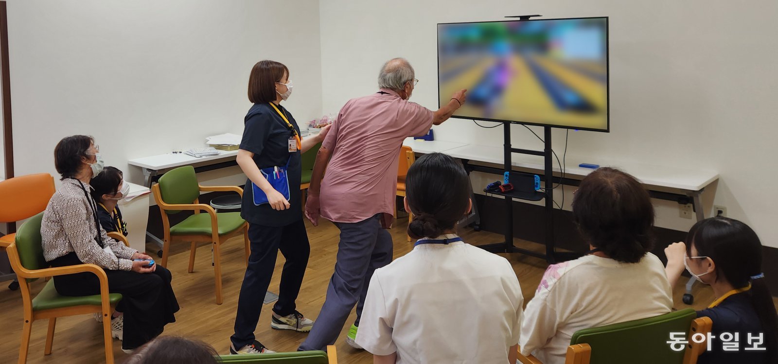 《65세 이상 노인이 전체 인구의 20% 이상을 차지하면 초고령 사회로 분류한다. 대한민국은 공식적으로 2024년 12월 초고령 사회에 진입했다. 사회 모든 분야에서 그 파장이 감지되고 있다. 특히 노인 의료 시스템 개혁이 절실하다. 삶의 질을 유지하면서 건강하게 살 수 있는 방법은 없을까. 동아일보는 고려대 의료원과 함께 이 방법을 찾기 위한 시리즈를 5회에 걸쳐 연재한다.》일본은 20여 년 전, 세계에서 가장 먼저 초고령 사회에 진입했다. 고령자 건강 관리가 더 시급해졌다. 대표적 노인 질환인 치매만 보더라도 인지장애를 포함하면 900만여 명에 이른다. ‘강 건너 불구경’이 아니다. 우리에게도 곧 들이닥칠 미래다. 병에 걸리지 않는 것, 그리고 걸려도 건강하게 사는 것이 풀어야 할 숙제가 됐다. 일본은 어떻게 대처했을까. 일본 아이치현 오부시 국립장수의료연구센터(NCGG)를 찾았다. 2004년 설립된 NCGG는 고령자 전문 국립센터로 301개 병상을 갖추고 20개 이상의 진료과를 운영한다. 치매를 비롯해 노인 질병에 대한 예방과 연구 활동도 활발하다.아라이 히데노리 이사장(노년내과 전문의)은 “NCGG는 노인 환자가 삶의 질을 유지하며 가족과 함께 즐거운 노년을 보내기를 가장 원한다”고 말했다. 혹시 이곳에서 해답이 보일까. NCGG를 들여다봤다. ● “참여형 재활, 병 진행 늦춰”먼저 재활 치료를 지켜봤다. 매주 3회 오후 1시간씩 주로 경증 치매 환자를 대상으로 진행한다. 환자와 스태프 등 10여 명이 참여하는데, 언뜻 보기에는 그저 왁자지껄 e스포츠를 즐기는 듯했다. 벽에 걸린 대형 TV에 볼링 게임 화면이 떴다. 환자들은 순번이 돌아오자 게임기를 들고 볼링 동작을 취했다. 볼링핀을 쓰러뜨리든 쓰러뜨리지 못하든 격려와 환호의 박수가 쏟아졌다.여러 감각 기관을 써서 다른 환자들과 사회적 교류를 하며 유쾌하게 즐기는 것. 이것이 이 센터의 재활 치료였다. 환자들은 내내 웃었다. 아라이 이사장은 “치매 환자들은 잘 웃지 않는다. 자주 웃게 만들어야 감정도 풍부해지고 치매 진행도 늦춘다”고 말했다. 즐겁게 투병해야 치료 효과도 높다는 뜻이다. 치매 치료실이 유쾌했던 이유다. 노인 질병은 피할 수 없다. 그렇다면 이 같은 방식의 재활 프로그램은 강점이 될 것으로 보인다. 민간 영역에서도 이런 프로그램은 충실히 운영되고 있다. 아이치현 나고야시 신차야 노인보건시설은 국내 요양병원과 노인주간보호센터를 혼합한 모델인데, 단지 ‘수발’만 하지는 않았다. 사와다 아키히로 사업부장은 “노인들이 건강을 회복해 일상으로 돌아갈 수 있도록 재활을 돕는다”고 말했다. 실제로 노 젓기, 실내 자전거 타기 같은 재활 훈련을 하는 경증 환자들이 심심찮게 보였다. 근력 강화 운동이나 그룹 재활 프로그램도 가동 중이었다. 가령 취향이 같은 사람들끼리 소프트볼을 하거나 산책을 하기도 한다. 사와다 부장은 “이런 참여를 통해 사회적 유대감을 높임으로써 우울증과 기억력 감소를 막는다. 결과적으로 치매 진행도 늦출 수 있다”고 강조했다. ● 절대 필요한 근력 운동 아라이 이사장은 “노인 건강에 운동, 특히 근력 운동만큼 중요한 것도 없다”고 말했다. 실제로 NCGG는 여러 운동 프로그램을 개발해 보급하고 있다. 근력과 유연성을 모두 키울 수 있으면서 노인이 쉽게 따라 할 수 있는 동작을 추려 봤다. 매일 30∼60분씩 해보자. 가능하면 시간을 정해놓고 같은 시간대에 하는 게 좋다. 기본 자세는 의자에 앉아 상체를 세우고 정면을 바라보는 것이다. 이 상태에서 ① 한쪽 무릎을 펴며 지상과 수평이 되게 쭉 뻗는다. 발끝은 천장을 향한다. 왼발과 오른발을 번갈아 가며 50회씩 3세트를 한다. ② 한쪽 발을 바닥에 댄 채로 쭉 뻗는다. 상체를 숙이면서 손을 발끝으로 뻗는다. 발끝은 천장을 향한다. 30초 동안 멈춘 후 좌우 바꿔 시행한다. 3세트 반복한다. ③ 한쪽 다리를 끌어 올려 허벅지가 배에 닿도록 노력한다. 좌우 번갈아 가며 50회씩 3세트를 한다. ④ 앞 동작을 반복하되 허벅지를 들어 올렸을 때 상체를 뒤튼다. 오른발을 들면 왼쪽 팔꿈치가 오른발 허벅지에 닿도록 한다. 좌우 교대로 10회씩 3∼5세트를 한다. 의자에서 일어서자. 의자 등받이를 잡고 선다. ① 다리를 앞뒤로 벌린 후 앞무릎을 구부리고 뒷다리를 쭉 편다. 종아리에서 팽팽함이 느껴져야 한다. 30초 동안 지속한다. ② 다리를 살짝 벌려 선다. 한쪽 발을 뒤쪽으로 쭉 찬다. 이때 무릎은 자연스럽게 굽힌다. 좌우 돌아가며 30회씩 3세트를 한다. ③ 앞 동작을 똑같이 하되 무릎을 편다. 좌우 돌아가며 50회씩 3세트를 한다. ④ 어깨너비로 발을 벌린다. 한쪽 발을 옆으로 들어 올린다. 좌우 번갈아 가며 30회씩 3세트를 한다. ⑤ 두 발을 붙인 후 까치발 동작을 취한다. 50회씩 3세트를 한다. ⑥ 옆으로 선 뒤 한쪽 발끝으로 마룻바닥에 크게 원을 그린다. 무릎은 쭉 편다. 좌우 돌아가며 10회씩 3세트를 한다. 벽을 이용할 수도 있다. 벽에 등을 대고 선 뒤 ① 몸을 쭉 뻗으며 만세를 부른다. 30초 동안 그 자세를 유지한다. ② 스쾃 자세를 취한다. 무릎을 많이 구부릴 필요는 없다. 강도를 조절하며 50회씩 3세트를 한다. ③ 벽에서 떨어져