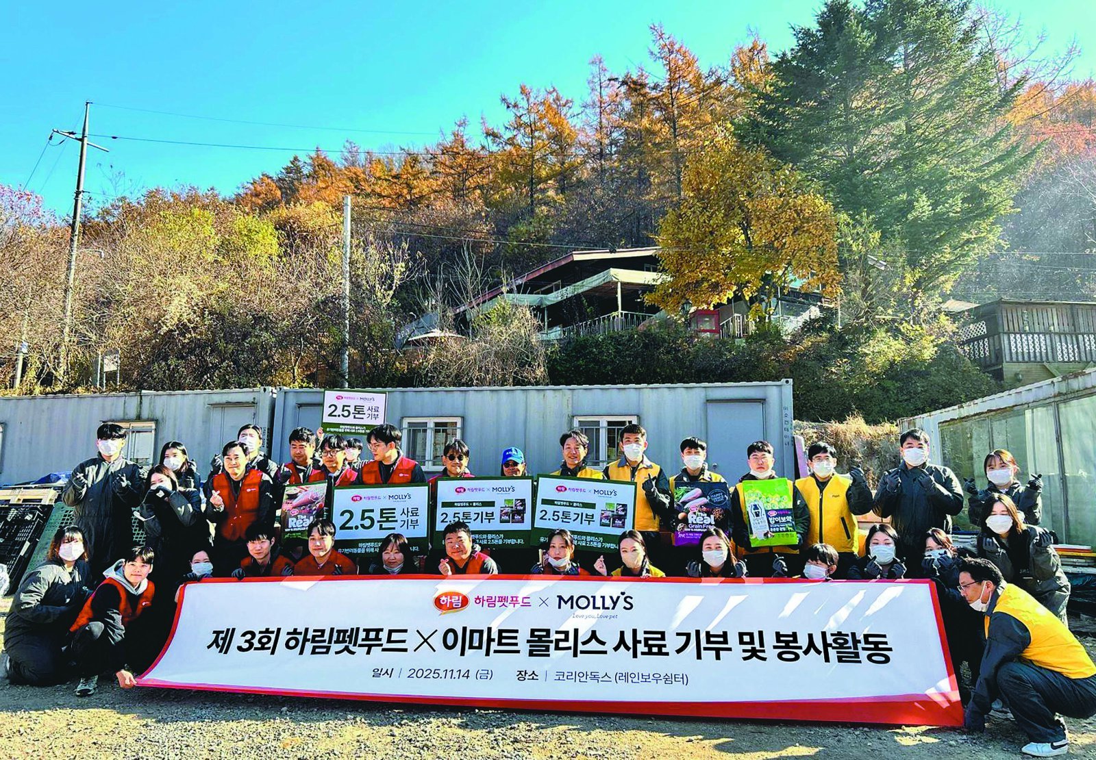 이마트는 반려동물 전문 브랜드 몰리스를 통해 유기동물 보호와 입양 활성화를 위한 다양한 상생 활동을 이어오고 있다. 하림펫푸드와 협력해 사료 기부와 입양 캠페인을 진행하며 기업의 사회적 책임을 실천하고 있다. 14일 이마트는 하림펫푸드와 함께 코리안독스 레인보우 쉼터에 3000만 원 상당의 사료를 기부했다. 이마트와 하림펫푸드 임직원 40여 명은 봉사활동에 참여해 견사 청소, 시설 정비, 유기견 산책 등의 활동을 진행했다. 2023년 12월에도 이마트와 하림펫푸드는 연말을 맞아 혹한기와 월동 준비로 어려움을 겪는 유기동물 보호소를 돕기 위해 사료 2t을 기부했다. 사료는 코리안독스 레인보우 셸터 등 보호소에 전달됐다. 올해 4월에는 유기동물 입양 활성화를 위해 몰리스와 하림펫푸드가 공동 캠페인을 진행했다. 몰리스는 전국 매장에 입양 전용 공간을 마련하고 고객이 보호소의 유기동물 정보를 직접 확인하고 입양을 결정할 수 있도록 QR코드 기반 시스템을 도입했다. 캠페인명은 ‘더리얼이 몰리스와 함께 가족을 찾습니다’로, 단순한 입양 장려를 넘어 입양 이후에도 반려동물이 건강하고 행복한 삶을 이어갈 수 있도록 다양한 혜택을 제공했다. 입양 완료 시 몰리스는 지정 동물병원 20% 할인 혜택을 제공하고 하림펫푸드는 1년간 프리미엄 사료와 간식을 지원했다. 몰리스의 유기동물 보호활동은 단순한 이벤트가 아니라 지속가능한 상생 모델로 자리 잡고 있다. 박재형 이마트패션 & 리빙담당은 “몰리스는 사료 기부와 봉사활동뿐 아니라 유기동물 문제를 해결하고 도움을 주기 위한 다양한 활동을 지속적으로 진행해 나갈 예정”이라고 말했다.신수정 기자 crystal@donga.com}