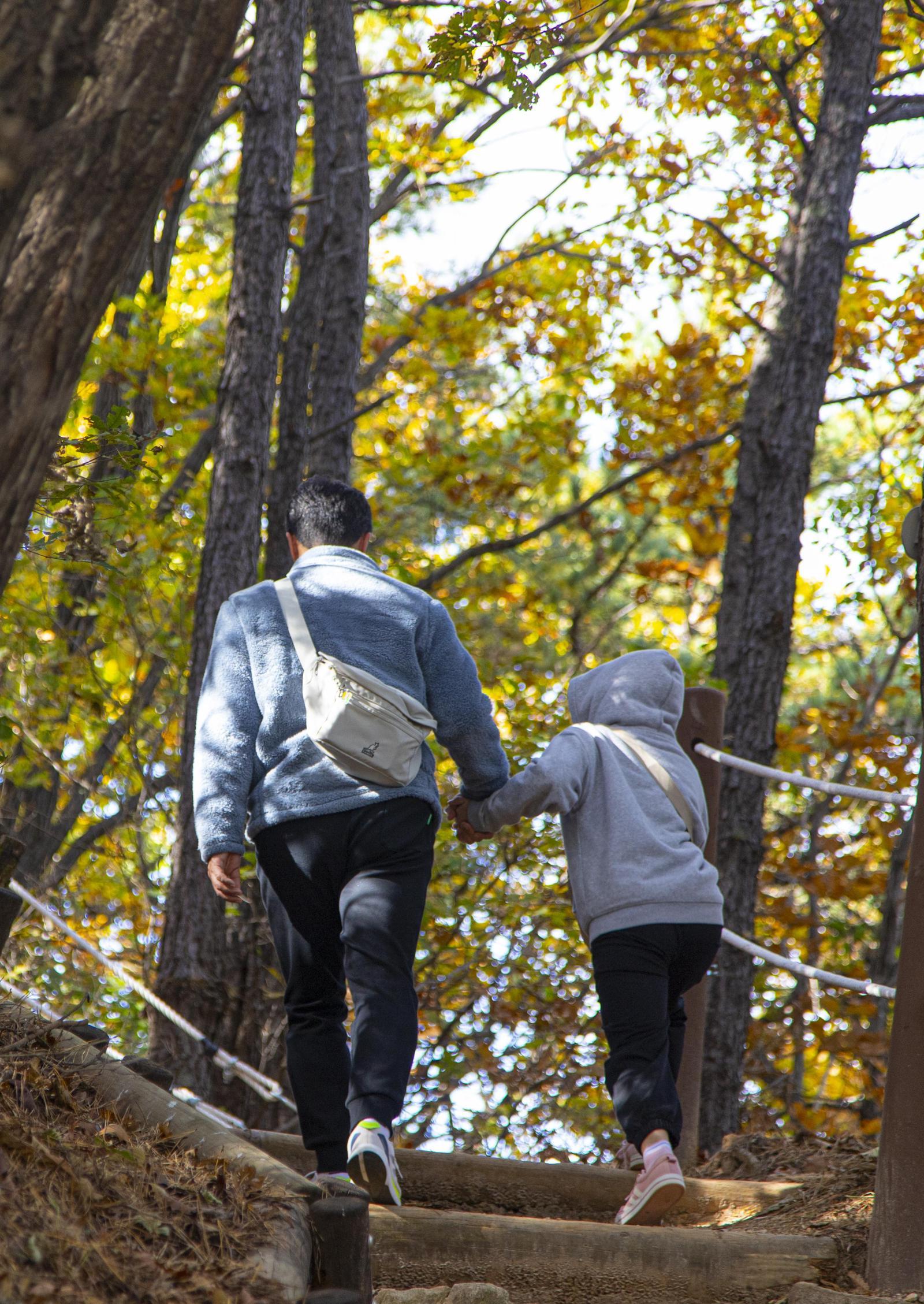 초록이던 숲이 알록달록 화려한 옷으로 갈아입은 늦가을, 잠깐 머물다 사라지는 이 순간을 그냥 흘려보내기엔 아쉽다. 요즘처럼 찬 바람이 불 때면 사각사각 떨어진 낙엽을 밟으며 숲길을 걷는 것도 좋다. 숲이 주는 평화로운 기운 덕분에 발걸음은 한결 가벼워지고 마음도 차분해진다. 경기관광공사는 바쁜 일상에서 잠시 벗어날 수 있도록 서울에서 차로 1~2시간 거리의 숲길을 추천했다.● 산책·트레킹·등산이 하나로광명 구름산 산림욕장은 자신에게 맞는 방식으로 숲을 즐길 수 있다. 둘레길을 중심으로 걸으면 산책이 되고, 구름산 남쪽과 북쪽을 잇는 코스를 따르면 트레킹이 된다. 구름산 정상을 오르면 가벼운 등산 코스가 완성된다.아이와 함께 산에 오르기에도 부담이 적다. 통나무 놀이시설과 책을 읽을 수 있는 숲속 도서관이 있어 반나절을 보내기에 충분하다. 피크닉 벤치와 나무 선베드가 곳곳에 마련돼 있어 잠시 쉬어갈 수도 있다. 수백 그루의 전나무 숲에서는 피톤치드 향이 짙게 퍼진다. 깊게 숨을 들이마시면 몸과 마음이 한결 가벼워진다.숲을 더 즐기고 싶다면 광명동굴로 향하는 둘레길로 발길을 돌리면 된다. 오른쪽 가파른 길을 오르면 구름산 정상으로 이어진다. 정상까지 거리는 약 2.2㎞다.가평 청평자연휴양림은 북한강과 청평호를 끼고 있다. 진입로부터 호수 옆을 따라 달리기 때문에 차창 밖으로 반짝이는 물빛이 시선을 잡는다. 휴양림은 유료(성인 5000원)지만, 휴양림 내 카페에서 음료 한 잔을 무료로 마실 수 있다. 카페는 숲과 계곡 사이에 자리 잡고 있어 그 자체가 휴식 공간이다.휴양림 숲길은 크게 두 갈래다. ‘다람쥐 마실길’과 ‘약수터 왕래길’이다. 다람쥐 마실길은 숙박동 사이를 잇는 1㎞ 안팎의 짧은 구간으로, 가볍게 둘러보기 좋다. 약수터 왕래길은 왕복 약 5㎞의 임도 코스로 폭이 넓고 경사가 완만하다. 숲을 감상하며 걷기에 부담이 적다. 15분가량 걸으면 전망대가 나오는데, 이곳에서 내려다본 북한강은 거울처럼 반짝이며 숲과 어우러진 풍경을 보여준다. 더 오르면 산 정상에 닿는다. 임도 끝에는 약수터가 있다. 깊은 숲속에서 솟는 약수를 한 모금 마시면 몸과 마음이 한결 개운해진다.● 몸도 마음도 건강해지는 치유의숲국립양평치유의숲은 걷기 좋은 길과 체험 프로그램이 잘 갖춰져 있다. 관리동을 기준으로 오른쪽은 휠체어나 유모차도 큰 불편 없이 이용할 수 있는 무장애 데크로드, 왼쪽은 임도와 흙길이 교차하는 산책로다. 좌우로 굽은 데크길을 오르다 보면 어느새 숲길 입구가 아래쪽으로 내려다보인다.관리동 왼쪽 산책로에는 제법 가파른 계단도 여러 차례 이어진다. 과거 금을 채굴하던 금광굴을 여러 곳에서 만날 수 있어 ‘광부둘레길’이라는 이름이 붙었다. 숲길에는 몸과 마음을 쉬게 하는 체험도 다양하다. 나무 아래 평상에 누워 바람을 느끼는 ‘슬로우드 테라피’, 해먹에 누워 호흡을 가다듬는 ‘숲멍 해먹’ 프로그램이 있다. 편백나무 볼을 활용한 지압 체험과 원적외선을 이용한 ‘온열 치유’, ‘펫로스 숲치유’ 프로그램도 운영된다. 모든 체험은 사전 예약제로 진행된다.조영달 기자 dalsarang@donga.com}