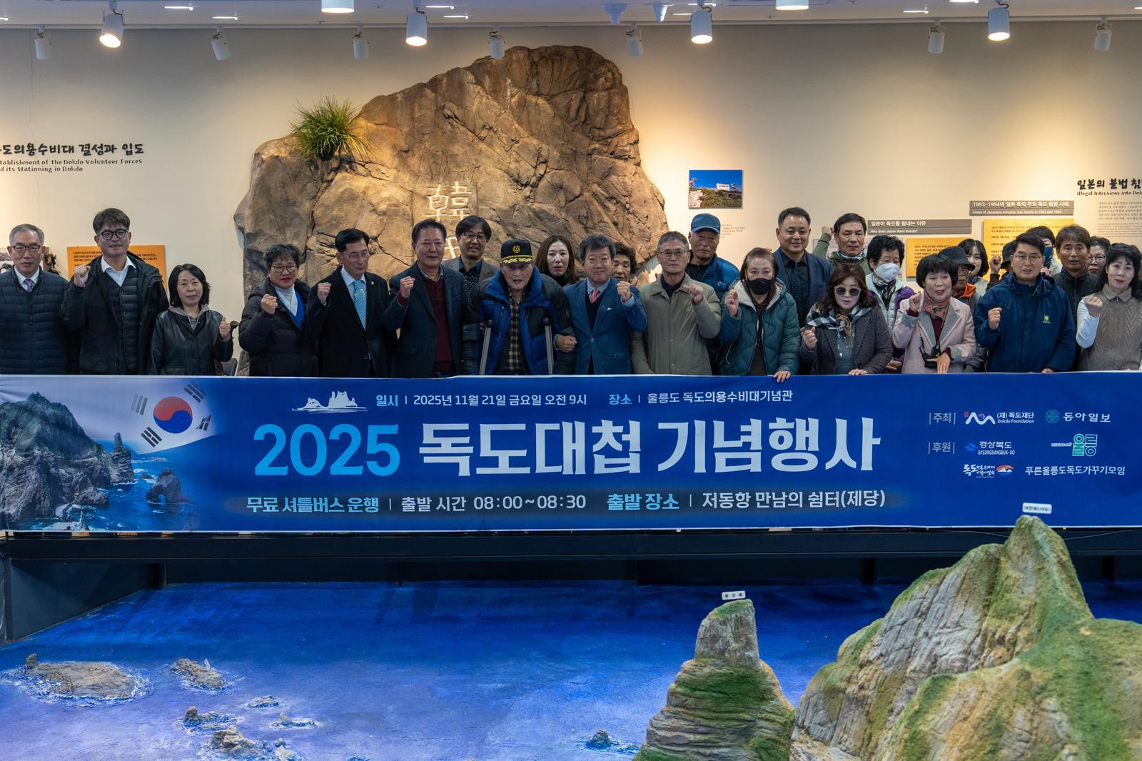 1954년 일본의 독도 침범을 저지한 ‘독도대첩’ 71주년을 맞아 독도의용수비대의 희생을 기리고 독도 수호의 의미를 되새기는 기념행사가 21일 경북 울릉군 독도의용수비대기념관에서 열렸다. 경북도 독도재단과 동아일보가 공동 주최한 이 행사에는 생존 대원인 정원도 옹(96)을 비롯해 의용수비대 유가족과 지역 주민 등 200여 명이 참석했다.1953년 울릉도 주민들이 자발적으로 결성한 독도의용수비대는 1956년까지 독도 침범을 시도한 일본에 맞서 영토를 수호했다. 특히 1954년 11월 21일 ‘독도대첩’ 당시에는 소총과 가늠자 없는 박격포만으로 일본 해상보안청 순시함 2척에 타격을 입히며 독도 침탈 시도를 막았다. 이후 일본은 물리적 침범을 중단했고, 의용수비대는 1956년 경찰에 임무를 인계했다. 현재 생존 대원은 정 옹과 박영희 옹(91) 등 2명이다.기념사를 맡은 남한권 울릉군수는 “독도의용수비대의 용기와 희생은 울릉도 주민이 지켜온 정신이자 대한민국의 역사”라며 “광복 80주년을 맞아 그 의미가 더욱 깊게 다가온다”고 말했다. 이날 행사에서는 독도의용수비대원 33명의 이름을 한 명씩 부르는 ‘호칭식’이 진행됐다. 행사장 분위기는 숙연해졌고 일부 참석자는 눈시울을 붉혔다. 정 옹은 “독도대첩 당시 동료 대원들과 열악한 조건 속에서도 일본 함정을 격퇴했던 기억이 아직도 생생하다”며 “하늘에서 지켜보고 있을 동료들도 감개무량할 것”이라고 말했다.같은 날 국립대전현충원에서도 독도의용수비대 기념사업회 주관 추모식이 열렸다. ‘33인의 영웅, 기억하겠습니다’를 주제로 한 행사에는 생존 대원 박 옹과 유가족, 국가보훈부 관계자 등 450여 명이 참석했다.울릉=명민준 기자 mmj86@donga.com}