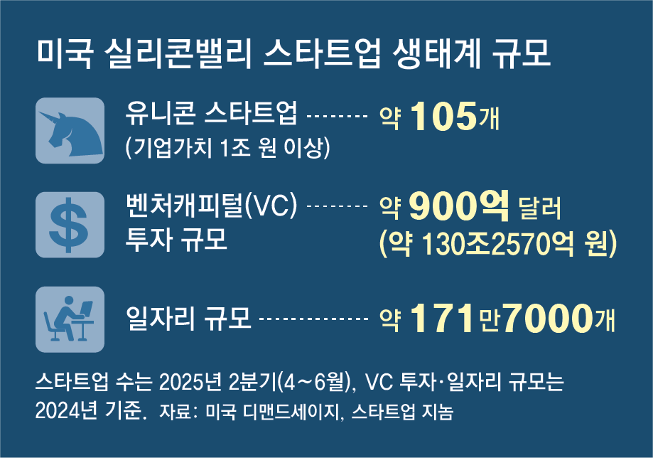 지난해 12월 16일(현지 시간) 미국 캘리포니아주 실리콘밸리 마운틴뷰에 있는 로봇 스타트업 ‘더스티 로보틱스’. 이곳에서는 청소기처럼 생긴 작은 로봇이 흰 바닥 위를 분주히 누비고 있었다. 로봇이 지나간 자리 바닥에는 건물의 외형, 배관 위치 등이 담긴 설계도가 그려졌고 그 위로 영어, 스페인어, 한국어 등 다양한 언어로 된 시공 안내문이 새겨졌다. 다양한 국적의 현장 작업자들은 언어 장벽과 상관없이 일을 할 수 있었다. 이 로봇은 미국의 대형 건설사, 데이터센터, 아파트 등에서 쓰인다. 건설 인력난을 해결하기 위해 탄생한 이 기술은 사람이 직접 설계도를 그리던 기존 방식보다 업무 효율을 수 배 높였다. 잭 라이스 데이비스 수석 디렉터는 “로봇이 설계도를 정확히 그려주면 사람들은 시공에 집중할 수 있다”고 말했다. 건설 로봇 기술이 빛을 발하기까지는 실리콘밸리 특유의 ‘혁신 금융’이 든든한 연료가 됐다. 이곳 창업자들은 “투자자들은 창업 초기 2, 3년간은 수익을 안 따지고 밀어준다”고 입을 모았다. 실리콘밸리 금융 생태계에는 ‘홈런 한 번을 위해 99번의 실패를 포용한다’는 문화가 진작에 뿌리내렸다. 혁신 금융의 토양에서 성장한 구글, 애플 등 빅테크 기업은 미국 증시를 떠받치는 기둥이 됐다. 최근 미 증시가 3년 연속 20%대 상승을 이어가며 견고하게 성장하는 비결 역시 혁신 금융이 키워낸 혁신 기업의 활약에서 찾을 수 있다. 반면 혁신 금융 기반이 약한 국내에서는 한계를 느낀 창업가는 물론이고 투자처를 찾으려는 금융사들까지 실리콘밸리로 발길을 돌리고 있다.[이제는 혁신금융 전쟁] 〈2〉 실패해도 투자하는 실리콘밸리기술 결함 겪었던 美 로봇 스타트업실패에도 재도약 할 수 있던 비결로 벤처캐피털 꾸준한 투자 기반 꼽아유행 테마산업에 쏠리는 韓과 달리 실리콘밸리선 기업 잠재력 우선시“B급 사업도 A급 맨파워면 선택”“첫 투자자는 우리와 커피를 몇 번 마신 뒤 투자를 결정했어요.”미국 실리콘밸리 로봇 스타트업 ‘더스티 로보틱스’의 테사 라우 최고경영자(CEO)는 지난해 12월 16일(현지 시간) 첫 투자 유치 순간을 이렇게 회고했다. 2018년 창업한 라우 CEO는 창업 초기 첫 투자자와 한 달에 한 번씩 만나 커피를 마시며 건설 산업에 대해 새로 배운 점과 사업 아이디어를 소개했다. 그는 “투자자들은 시간이 가면서 우리가 점점 발전한 점을 높게 평가했다”고 말했다. 당시 더스티 로보틱스는 신생 기업이라서 뚜렷한 성과는 없었지만 투자자들은 전진하고 있는 점에 주목했다. 수익성 있는 기업으로 클 수 있겠다고 본 것이다. 라우 CEO는 과거 창업에 실패했던 쓰라린 경험이 있다. 실패해도 투자 기회를 주는 ‘혁신 금융’의 힘이 더스티 로보틱스를 키운 셈이다. 덕분에 이 기업은 7년간 약 7000만 달러(약 1011억 원) 투자를 모을 수 있었다. 미국 경제전문지 ‘패스트컴퍼니’가 2024년 선정한 ‘가장 혁신적인 기업’에도 꼽혔다. 실리콘밸리 기업가들은 혁신 금융가들이 스타트업 실패를 이해해주고 실패를 통한 학습을 가치 있게 여긴다고 소개했다.● “여러 실패가 기업을 성장시켜” 라우 CEO는 이미 한 번 사업을 접고 더스티 로보틱스를 창업했지만 또 다른 위기를 맞았다. 초창기에 샌프란시스코의 한 건설사가 아파트 건설 현장에서 로봇을 쓰다가 반품시켰다. 작동 오류로 바닥에 설계도를 직선이 아닌 곡선으로 그렸기 때문이다. 곧바로 문제점을 찾기 시작했다. 로봇을 실시간으로 제어할 때 와이파이 무선 인터넷이 적합하지 않다는 문제를 발견했다. 이후 제품을 재설계했다. 기술이 개선됐고 당시 로봇을 퇴출시켰던 아파트 건설사를 다시 고객으로 돌렸다. 라우 CEO는 “우리의 역사는 많은 실패로 가득 차 있고 그 실패가 우리를 성장시켰다”고 회고했다. 더스티 로보틱스가 실패에도 버텨내고 도약할 수 있었던 것은 실리콘밸리 벤처캐피털(VC) 생태계 역할이 컸다. 투자자들은 단기적 사업 완성도나 손익보다, 이 기술이 실패를 거쳐 얼마나 빠르게 진화하고 구조적 문제를 해결할 수 있는지를 본다. 99번 실패하더라도 1번의 성공을 기다려준다는 뜻이다. 이 회사의 잭 라이스 데이비스 수석 마케팅 디렉터는 “투자자들은 늘 ‘이 산업을 어떻게 바꿀 수 있을까’를 고민하는 회사들을 찾는다”고 말했다. 미국 대형 벤처캐피털들은 투자 초기 2, 3년간 수익화 여부를 묻지 않는다. 안준영 롯데벤처스 미국 지사장은 “벤처 펀딩은 육아와 비슷해서 4, 5년 만에 크길 바라는 건 큰 욕심”이라고 말했다.● “맨파워, B급 사업도 A+급으로 키운다” 데이터 분석업체 ‘디맨드세이지’에 따르면 지난해 2분기(4∼6월) 미국 전역엔 114만8000개 이상의 스타트업이 운영되고 있다. 이 중 상당수가 실리콘밸리에 있다. 실리콘밸리에서 기업 가치 10억 달러(약 1조4455억 원) 이상인 유니콘 기업은 105개다. 반면 대한상공회의소에 따르면 지난해 10월 한국 전체 유니콘 기업은 13개였다. 실리콘밸리 지역 유니콘 기업이 한국 전체의 8배다. 실리콘밸리가 유니콘 기업을 활발하게 배출할 수 있는 비결은 ‘혁신 금융’의 투자 공식이다. 혁신 투자자는 사업