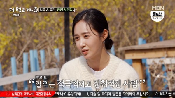 유리는 18일 밤 방송된 MBN ‘더 먹고 가’에서 드라마 ‘보쌈’에서 함께 주연으로 호흡을 맞추고 있는 정일우에 대해 “X가지 없는 톱스타 느낌이었다. 안하무인에 사랑 많이 받고 자란 사람일 거라 생각했다”고 말했다. 그는 “막상 작업을 시작해보니까 생각한 것과 다르더라”며 “잔정이 많더라. 적극적이고 진취적인 사람이라는 느낌을 받았다”고 고백했다.