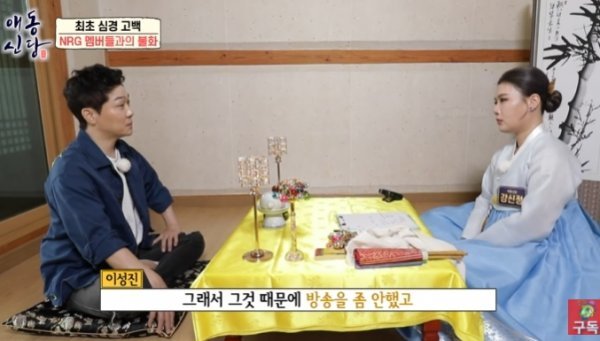 이성진은 지난 7일 공개된 유튜브 예능 ‘애동신당’에 출연해 NRG 시절 따돌림을 당했다고 주장했다.