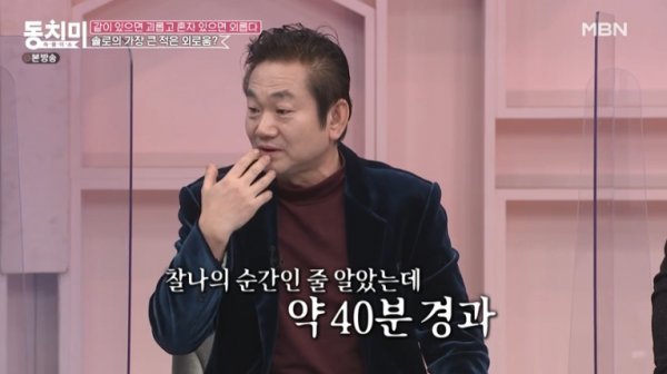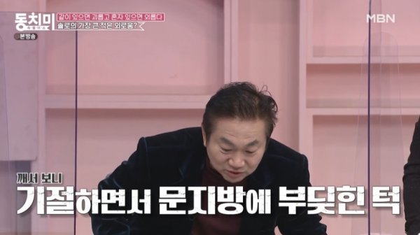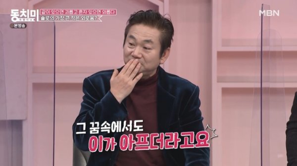 배도환은 5일 방송된 MBN ‘속풀이쇼 동치미’에서 독거 라이프의 고충을 털어놨다. 그는 “어느날 화장실에서 그대로 쓰러졌다. 순간 눈앞이 까매지더라. 잠깐 누웠다 일어난 줄 알았는데 40분이 지나 있었다”고 털어놨다.