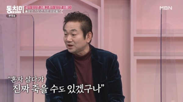그는 “‘이렇게 혼자 살다가는 죽을 수도 있겠다’ ‘이제는 진짜 혼자 살면 안 되겠다’ 싶었다. 그런데 못난 것도 없는데 왜 혼자 있는지 모르겠다. 혼자 있기 싫은데 매일 바쁘고, 드라마 촬영하고, 사람들 만나고 하다 보니 이렇게 됐다. 가슴이 시리다”고 호소했다.