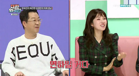 하지만 김경란은 “내가 최근에 무속인 6분이 계시는 프로그램에 나갔었는데 그분들의 이야기에 따르면 내가 외국 분을 만나면 좋다고. 그리고 아마 연하일 거다”라고 털어놨다.