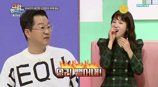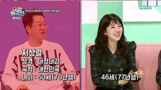 16일 오후 방송된 케이블채널 MBC 에브리원 \'대한외국인\'에 출연한 김경란. 이날 함께 출연한 지상렬은 김경란에게 호감을 드러냈다.