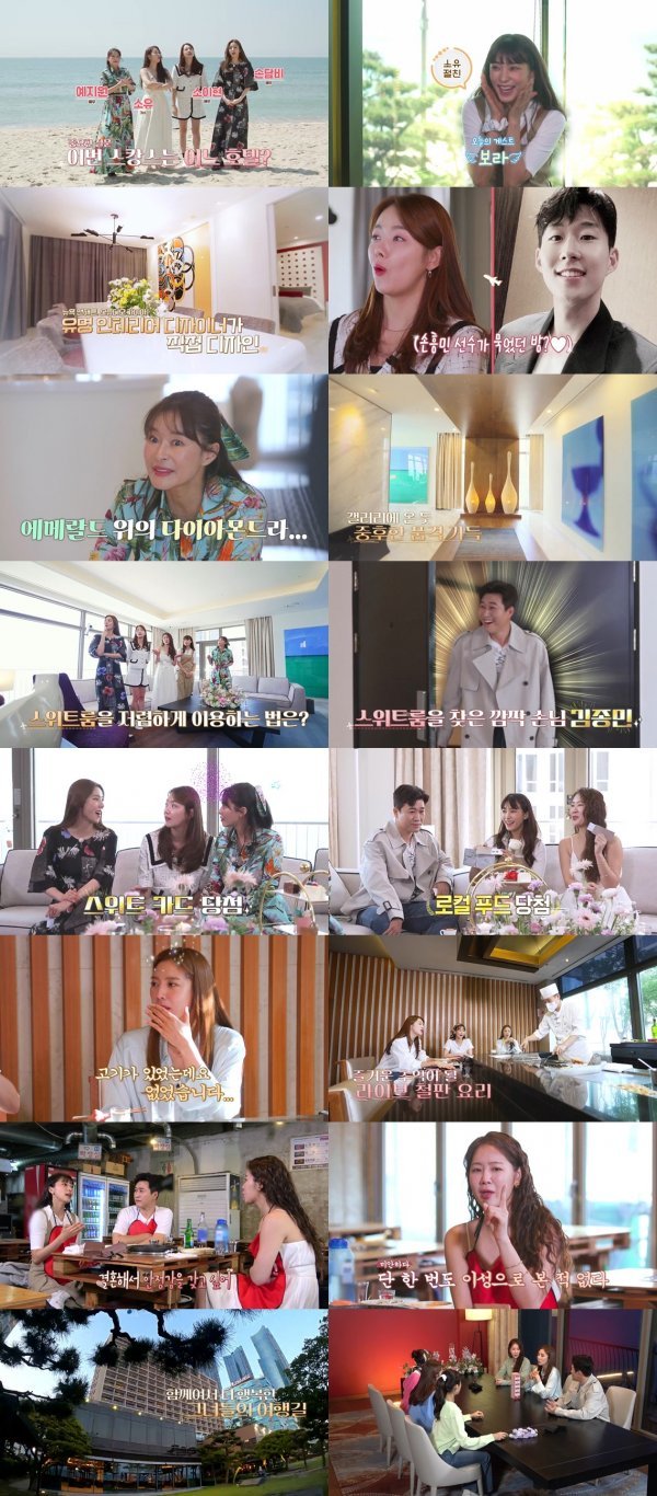 또 호텔 15층에 위치한 에메랄드 스위트룸으로 들어선 예지원, 손담비, 소이현, 소유, 보라는 환상적인 오션뷰는 물론 고급스러움의 끝판왕을 자랑하는 룸의 분위기에 감탄을 금치 못했다. 뉴욕 가이아 스튜디오의 유명 디자이너가 직접 디자인한 독특한 인테리어와 축구선수 손흥민부터 가수 싸이까지 남다른 투숙객 클래스를 전해 들은 다섯 멤버는 시종일관 벌어진 입을 다물지 못했다. 스위트룸을 보다 저렴하게 이용할 수 있는 꿀팁까지 전수받은 멤버들은 게스트와 호스트 모두의 취향을 저격한 스위트룸에서 상황극에 심취하기도 했다.
