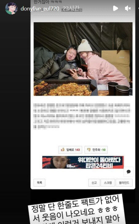 한유라는 지난 31일 자신의 SNS를 통해 “정말 단 한 줄도 팩트가 없어서 웃음이 나오네요ㅎㅎㅎ 저한테 이런 거 보내지 말아주세요…렜다슌”라는 글과 함께 사진을 게재했다.