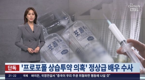 8일 TV조선 '뉴스9' 단독 보도에 따르면, 서울경찰청은 지난 6일 마약류관리법 위반 혐의로 A씨를 불러 조사했다. 복수의 병원을 돌며 프로포폴을 상습적으로 투약해온 정황을 포착했기 때문이다. 향정신성 의약품 유통을 감시하는 식품의약품안전처가 A씨의 지나치게 잦은 프로포폴 처방빈도를 파악하고 경찰에 수사의뢰한 것이다.