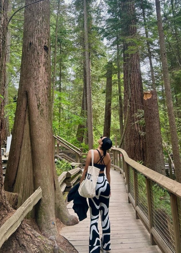 함께 공개된 사진에는 이상화가 캐나다에서 여행 중인 모습이 담겼다. 그는 화려한 무늬의 바지와 탄탄한 복근과 뒤태를 드러낸 브라톱을 입어 건강미 넘치는 몸매를 자랑했다.