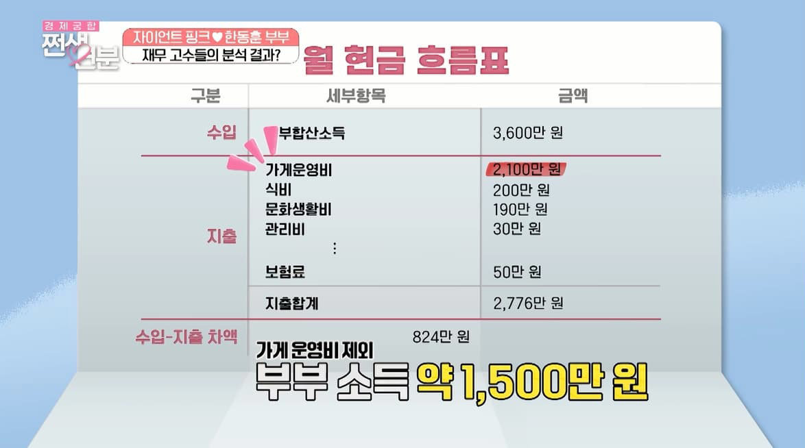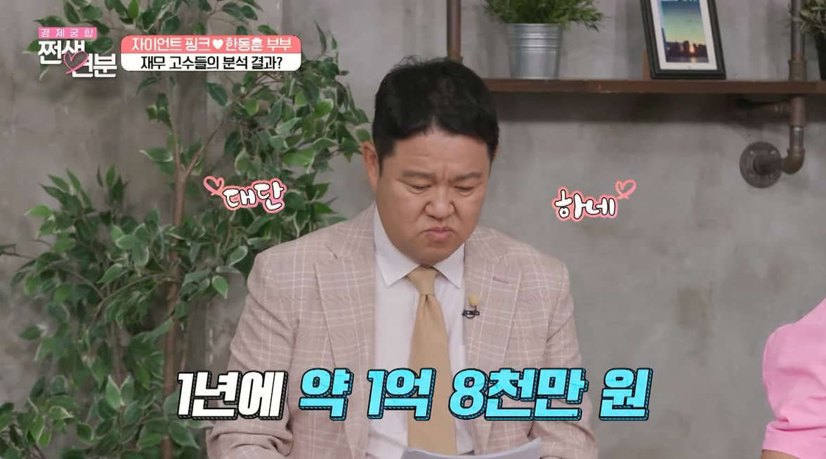 자이언트 핑크♥한동훈 부부가 한 달 수입을 공개한다.
