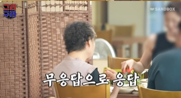 이날 김구라 그리 부자는 포천으로 가족 여행을 가 한 고깃집을 찾았다. 이들 부자가 식사하던 중 그리는 “지금 우리 할머니가 계신다, 지금 우리 앞에 앉아계신다”며 “나와주시면 참 좋은데”라고 할머니의 출연을 바랐다. 이에 김구라는 “(어머니 섭외에 대해) 아예 얘기도 안 했어”라고 털어놨다. 이에 그리는 “다들 지금 긴장했다. 찍기 싫어하는 아우라가 있지 않나. 말을 못 꺼내고 있다”고 덧붙였다.