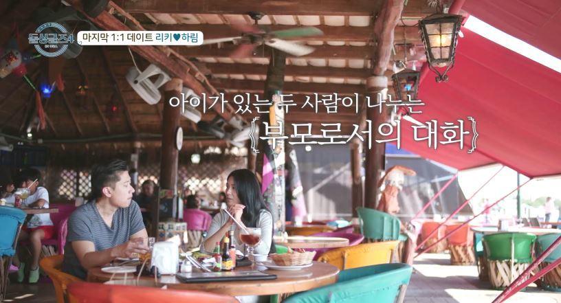 마지막으로 리키와 하림의 1:1 데이트 현장이 공개됐다. 데이트 장소로 향하던 차 안에서 두 사람은 “우리의 아이들을 비롯해, X와 X 애인의 아이들까지 하나의 큰 모임을 만드는 것도 좋은 방법 같다”는 이야기를 나눠 MC 이혜영, 이지혜 등으로부터 “이런 이야기를 들으니 문화 차이가 크게 느껴진다”는 ‘찐 리액션’을 자아냈다. 얼마 후 두 사람은 함께 식사를 하면서, “부모로서 서로의 아이들이 싸울 경우 어떻게 해결할 것인지”에 대해 현실적인 대화를 이어갔다. 또한 길거리에서 아이스크림을 나눠 먹다가 달콤한 첫 입맞춤을 했다.
