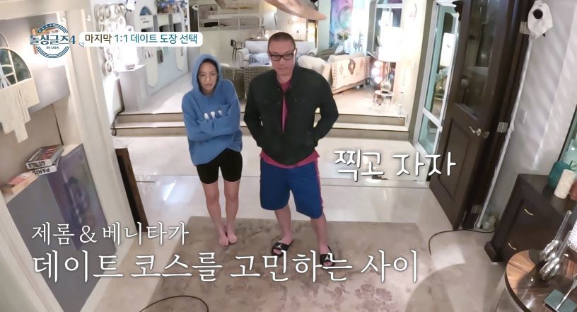 부모들의 ‘아이 자랑 타임’에 이어 감정이 요동치는 대화들이 오간 뒤, ‘삼각관계 주인공’ 베니타-제롬-톰만이 거실에 남아 있던 새벽, ‘1:1 데이트’에 관한 룰이 기습 공지됐다. ‘도장 마감 시간은 오전 8시, 오픈 시간은 미정’이라는 내용을 확인한 제롬은 톰보다 먼저 선수를 쳐 베니타에게 대화를 요청했고, 베니타를 자신의 방으로 데려가 “(톰이랑) 도장 찍지 마”라고 거침없이 대시했다. 베니타와 이야기하기 위해 제롬의 방 앞을 내내 서성거리던 톰은 두 사람의 대화가 끝나기만을 기다리다 끝내 잠이 들었다. 반면 집념의 제롬은 데이트 도장이 오픈된 새벽 5시 반까지 뜬눈으로 기다린 끝에, 베니타를 깨워 함께 도장 찍기에 성공했다.