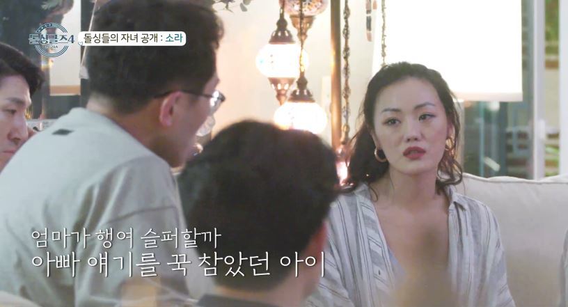 희진과 지미도 “아이가 없다”고 밝힌 가운데, 마지막 순서인 소라는 “곧 네 살 되는 아들이 있다”며 “전 남편과 사랑 없는 결혼 생활을 이어갈 수도 있었지만, 아이로 인해 이혼할 용기를 냈다”고 밝혔다. 그러면서 소라는 “이혼 후 아이가 나에게는 ‘아빠가 보고 싶다’는 이야기를 한 번도 안 했는데, 유치원에서 아빠를 찾으며 울었다더라”고 한 뒤 참았던 눈물을 터뜨렸다.