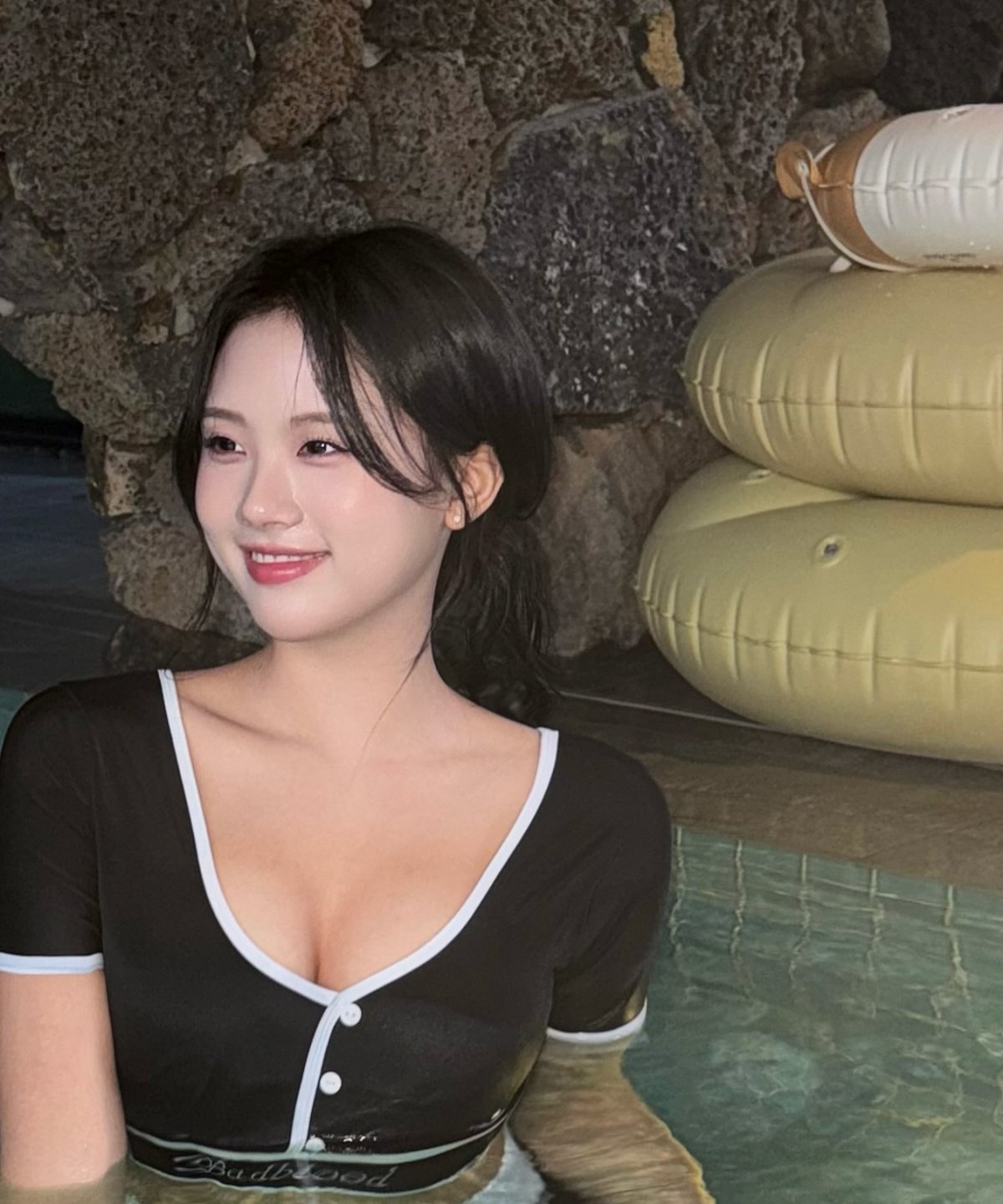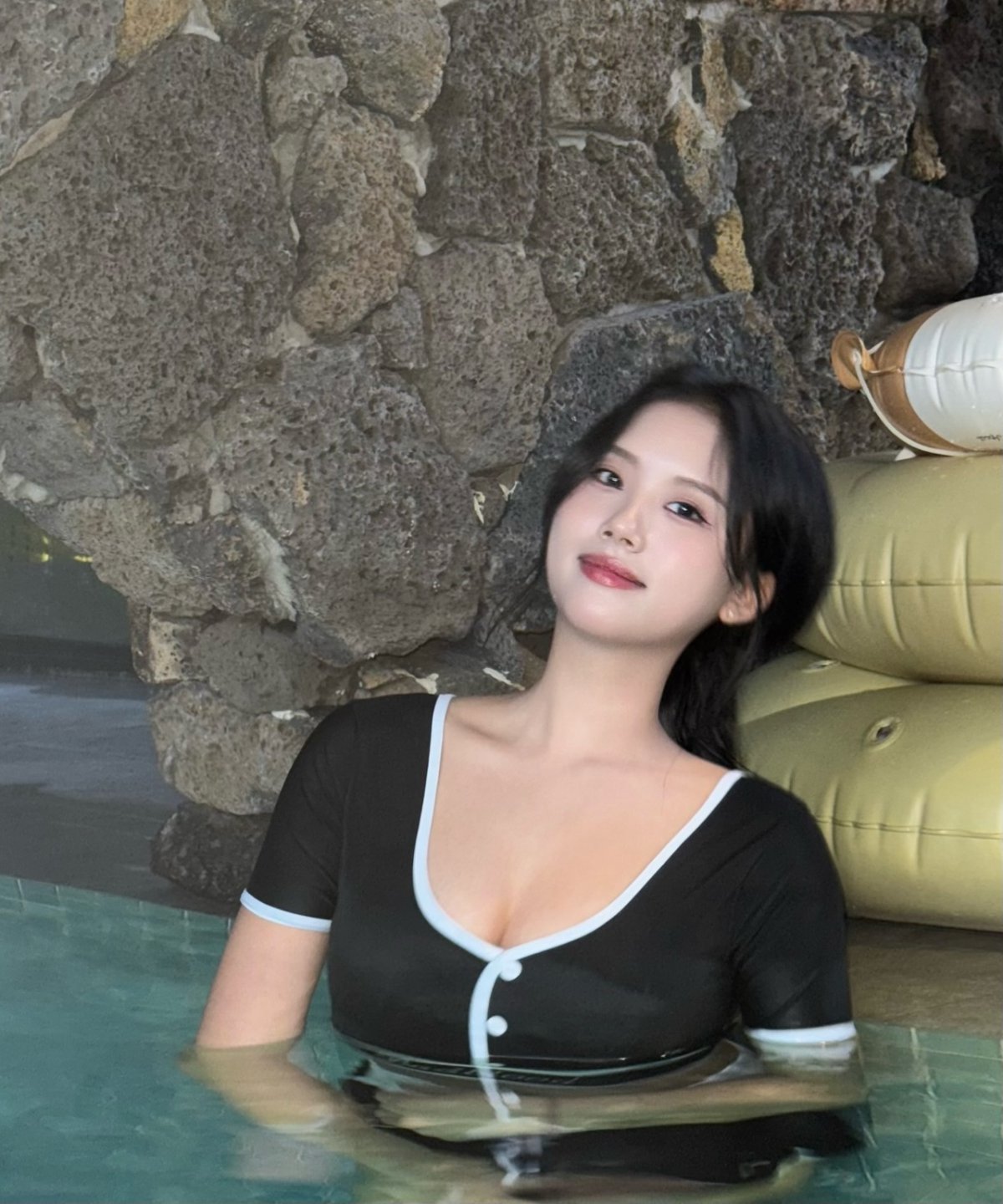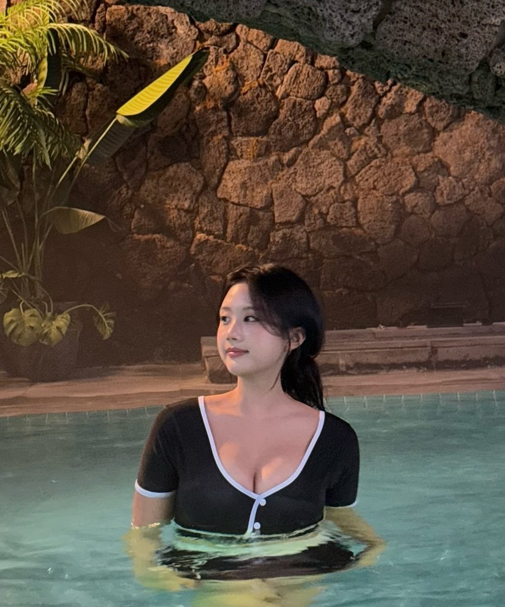 공개된 사진에는 제주도의 한 리조트 야외 수영장에서 물놀이를 즐기고 있는 재시의 모습이 담겼다. 재시는 허리라인이 드러나는 수영복을 입고 볼륨감 넘치는 몸매를 뽐내 성숙한 매력을 더했다.