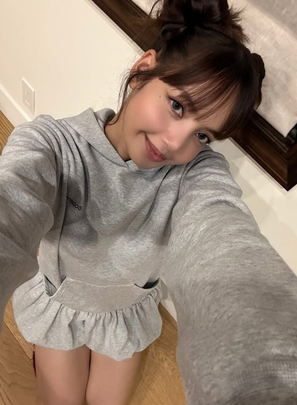 그룹 블랙핑크 리사가 하의실종 크리스마스 패션을 선보였다.