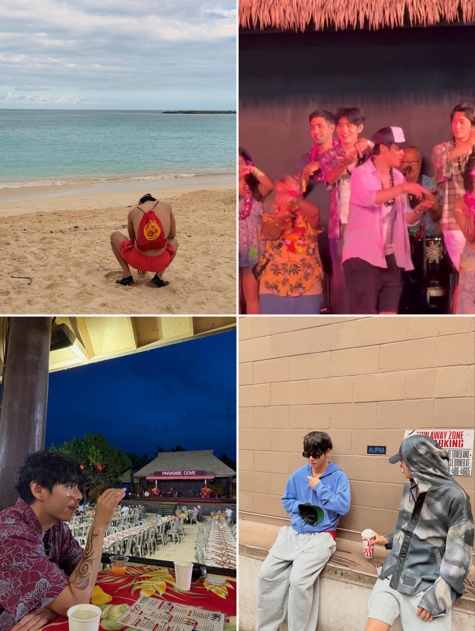 뷔는 절친 그룹으로 알려진 우가패밀리와 함께한 하와이 여행 사진도 올렸다. 바닷가에서 모래를 만지는 뒷모습은 건강미가 그대로 드러났고, 관광객들 사이에서 박형식과 나란히 훌라 댄스를 추는 영상에서는 능숙한 시선처리와 부드러운 동작이 눈길을 끌었다.