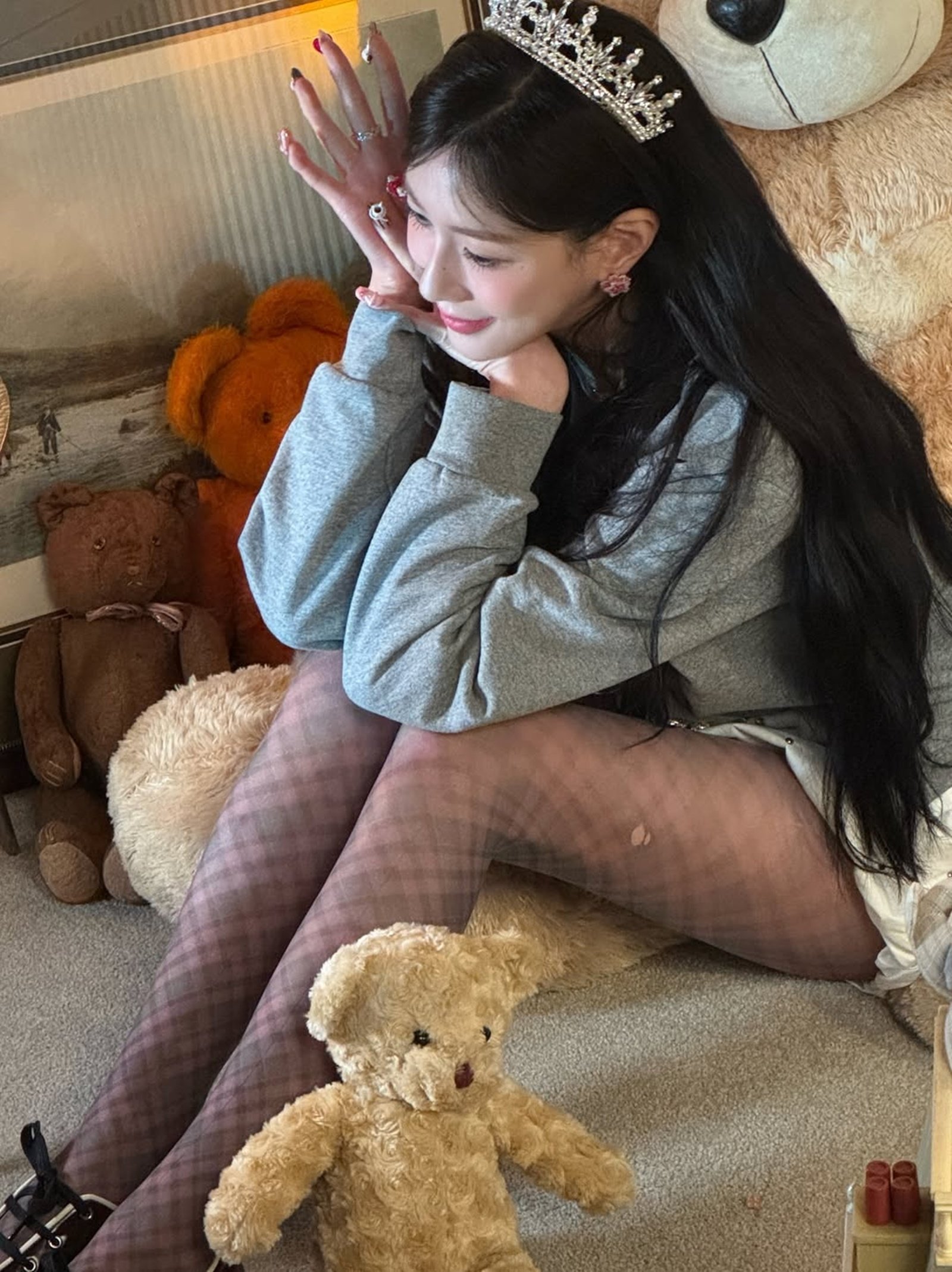 공개된 사진에는 신곡 ‘Love Me More’의 자켓 촬영 현장이 담겼다. 오하영은 스팽클 장식이 달린 브라운 상의를 입고 고혹적인 매력을 뽐내는가 하면, 그레이 가디건에 체크무늬 패턴의 스타킹을 매치해 키치한 스타일링도 찰떡같이 소화했다.