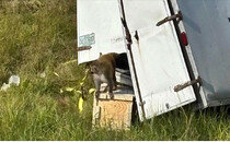 실험용 원숭이를 운반하던 트럭이 전복돼있다. (출처=AP/뉴시스)
